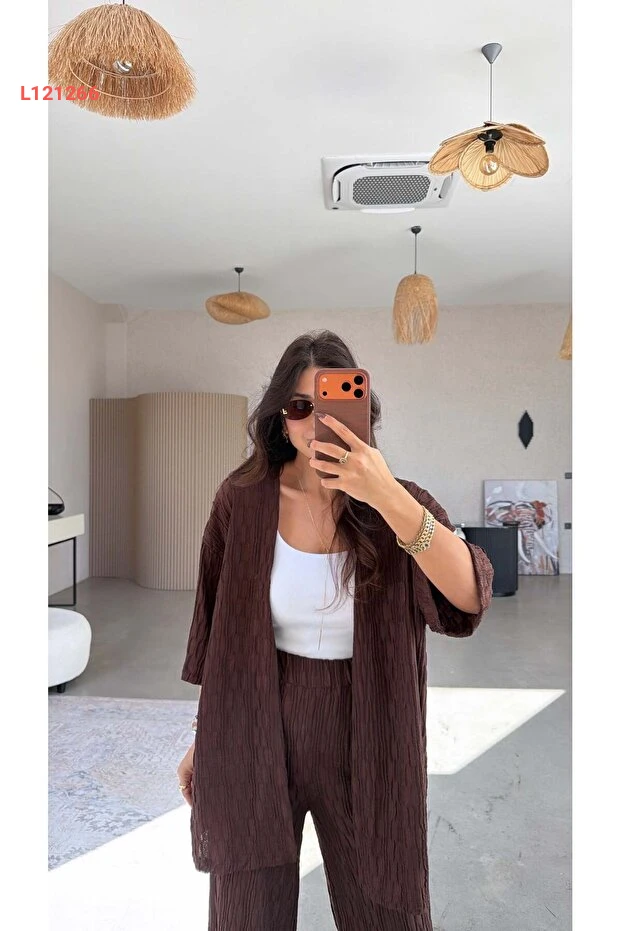 استمتع بإطلالة أنيقة مع طقم "Buket Teke" بلون بني داكن ذو نسيج مميز، الذي يجمع بين الراحة والأناقة. يجعلك جاكيت الطقم الفريد تبرز في أي مناسبة، مما يوفر لك مظهراً عصريًا وحصريًا بدون تضحية بالراحة. ارتديه مع قطع متنوعة لتظهر بأسلوبك الفريد في كل مرة.