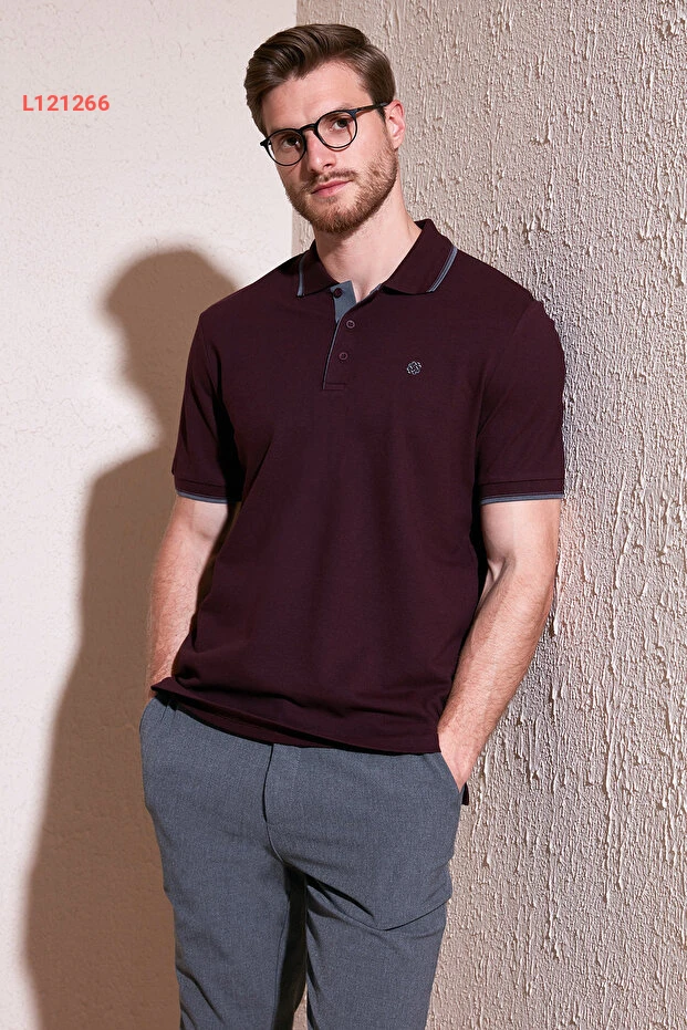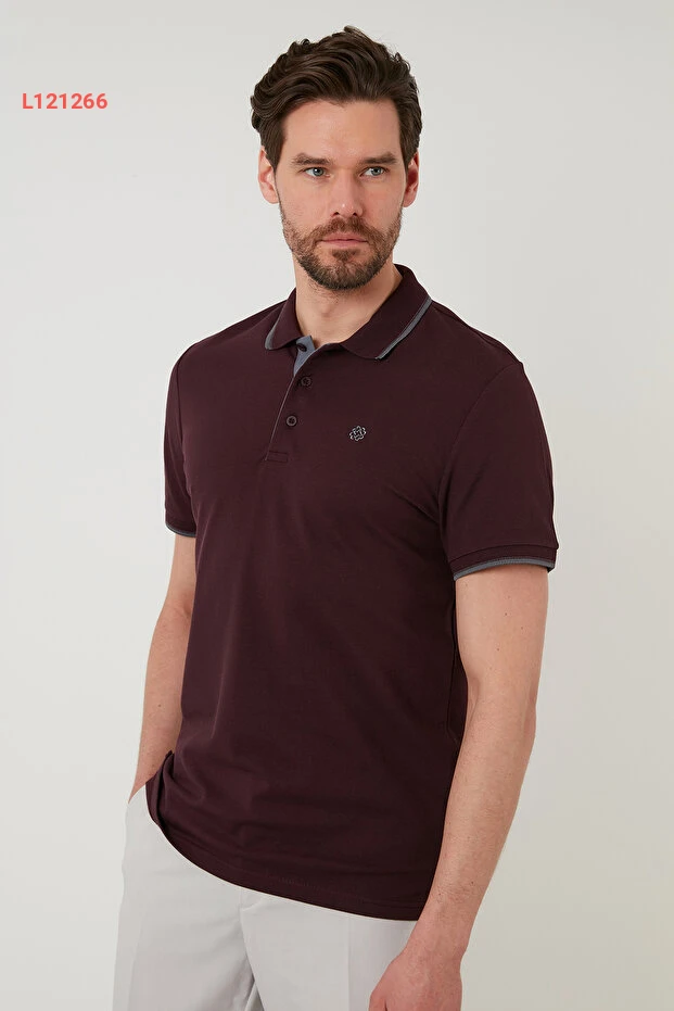 تي شيرت بولو رجالي بأزرار من قطن 100% - تصميم منتظم