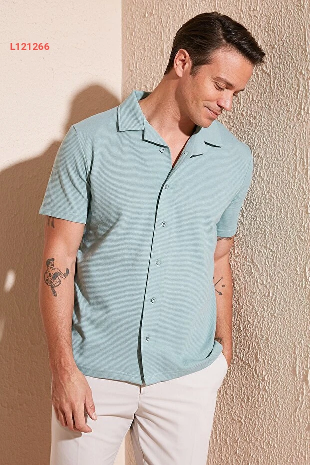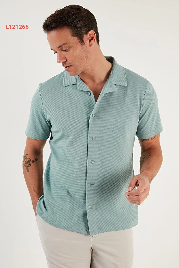 قميص بورا من القطن بتصميم عادي قصير الأكمام للرجال
