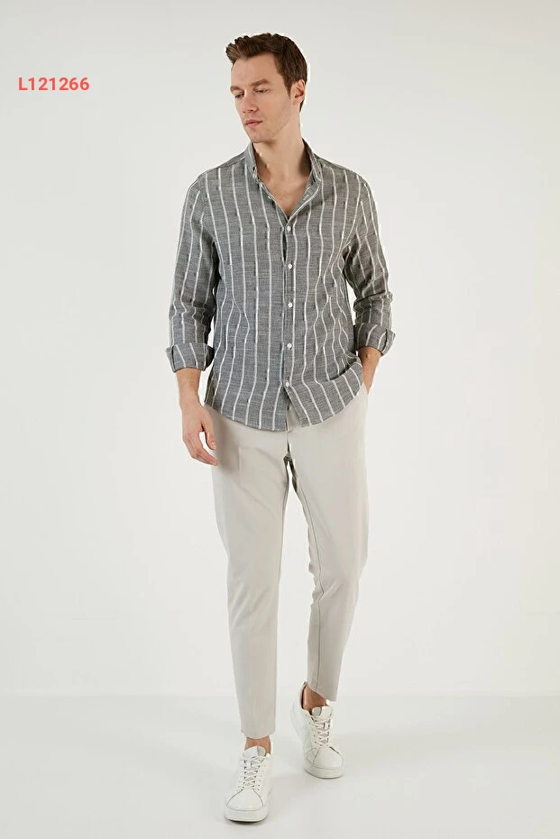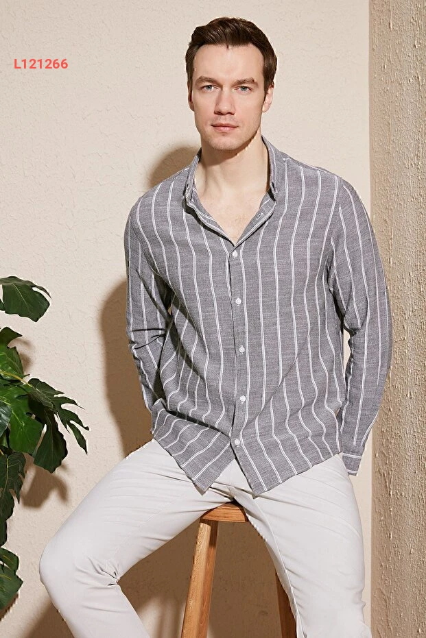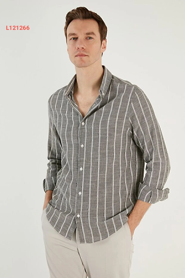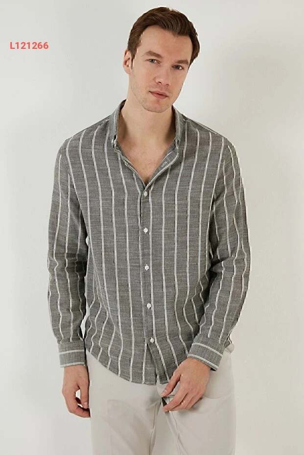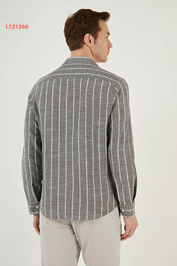 قميص بوراتّي كاجوال بياقة مزينة بأزرار للرجال مع تصميم مخطط من القطن