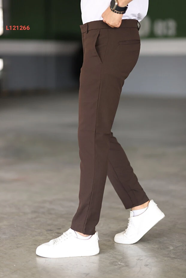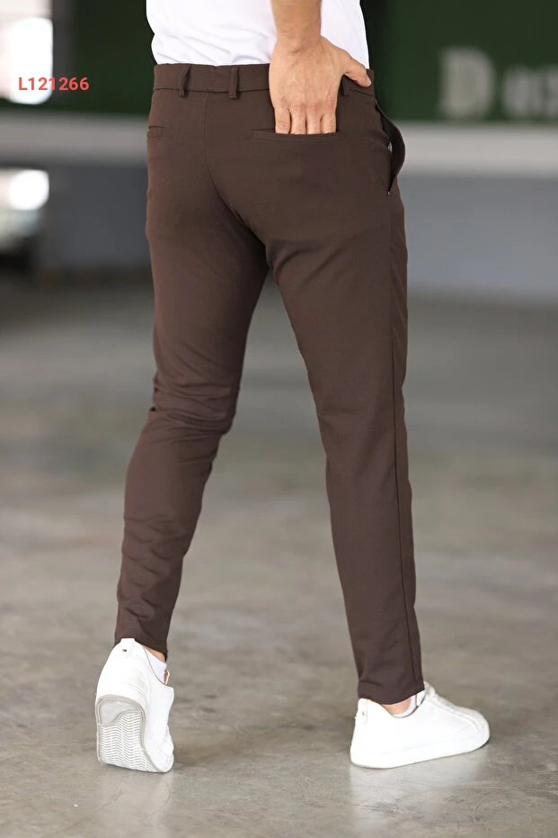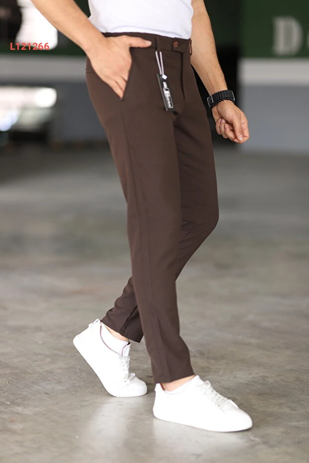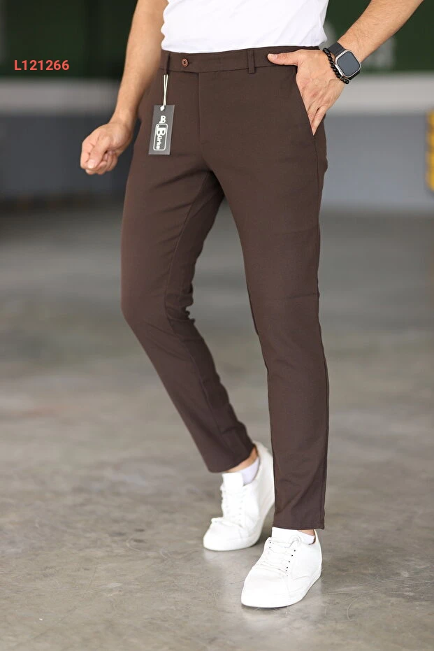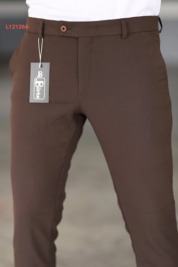 بنطلون بريكي بنمط كاجوال للرجال بلون بني من قماش مرن عالي الجودة