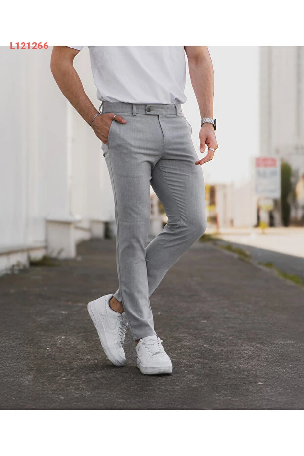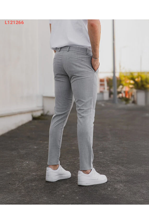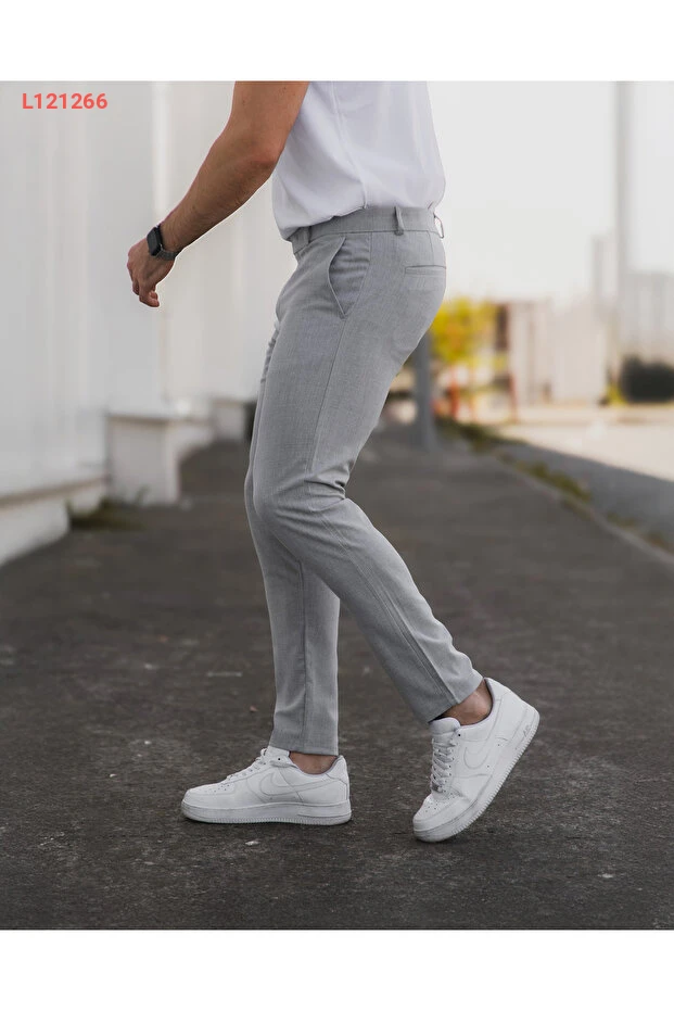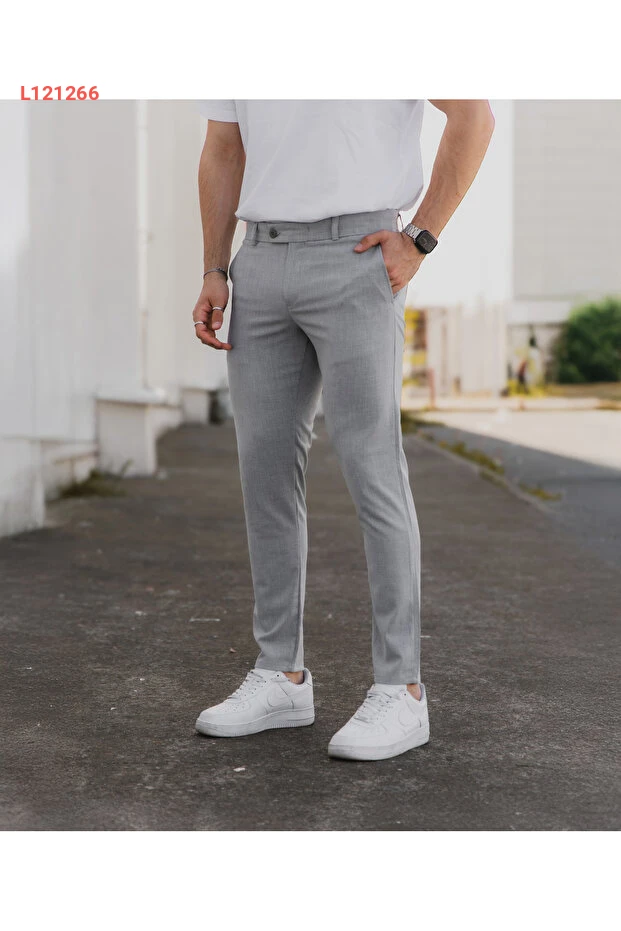 بنتلون رقيق رجالي رمادي من قماش ليكرا الممتاز بتصميم مريح