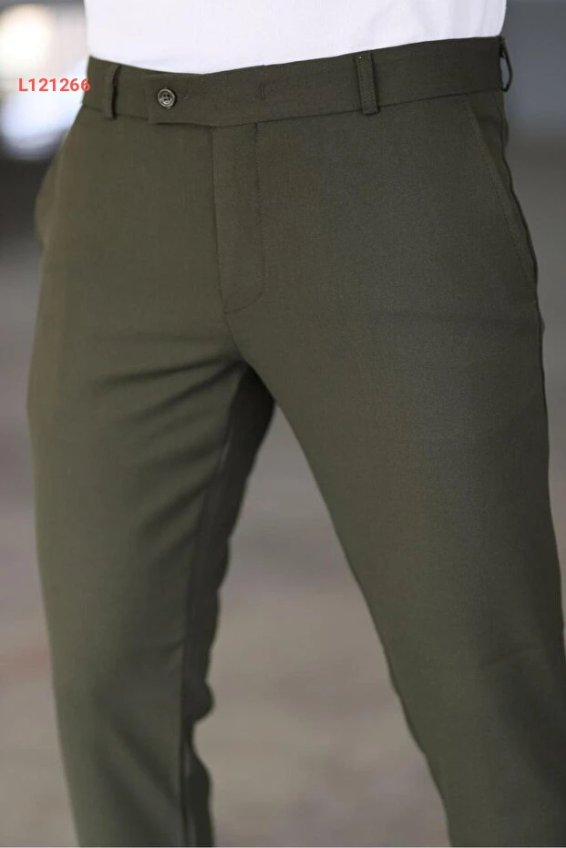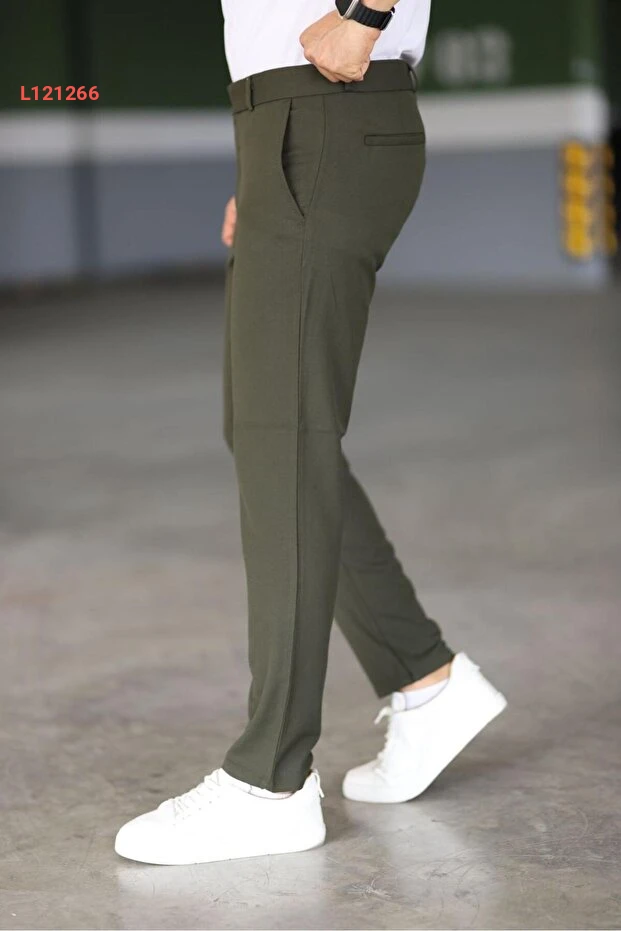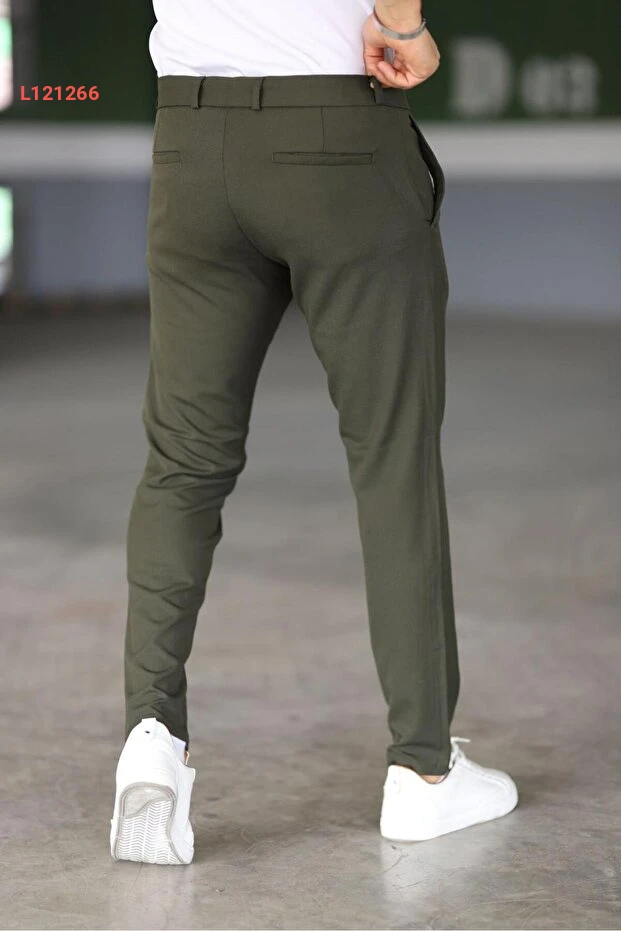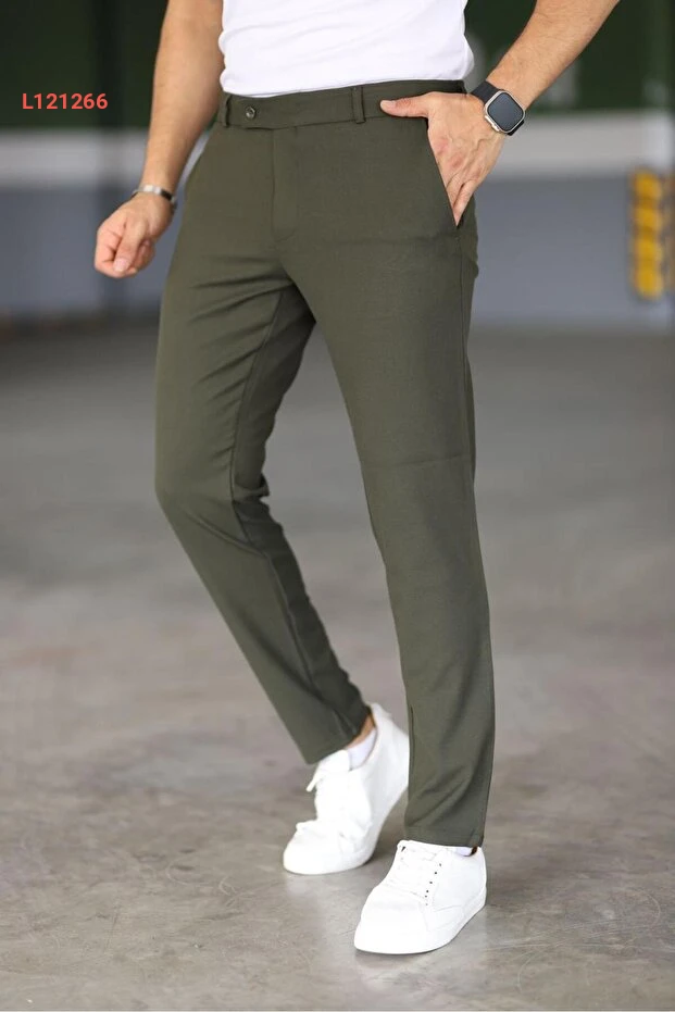 بنطال قماش رجالي بجودة عالية ومرونة في اللون الكاكي