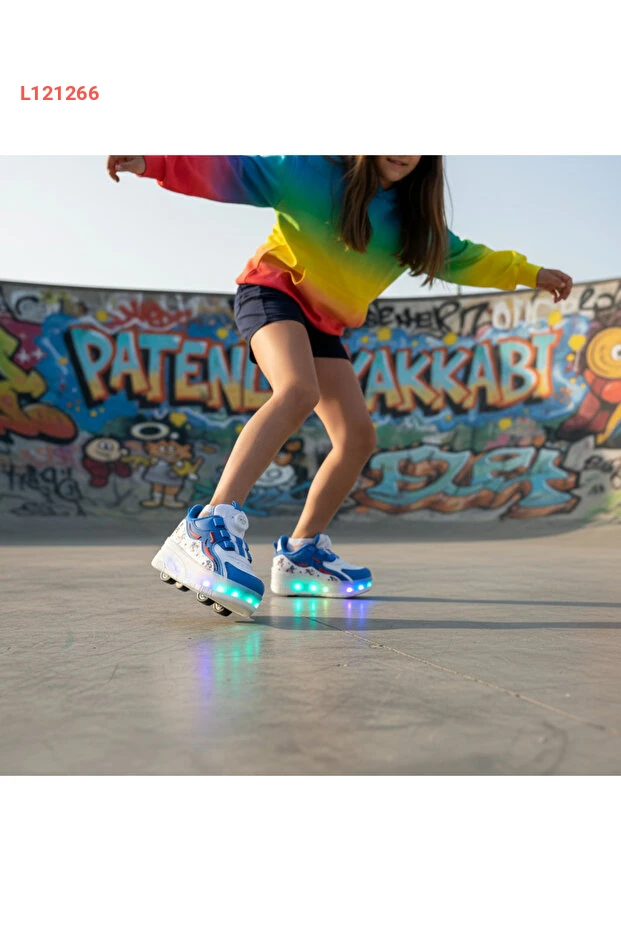 أحذية باتين للأطفال مزودة بإضاءة LED - حذاء رياضي دوبل للع boys والبنات