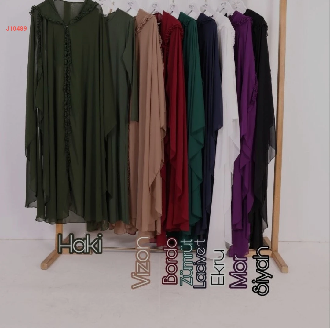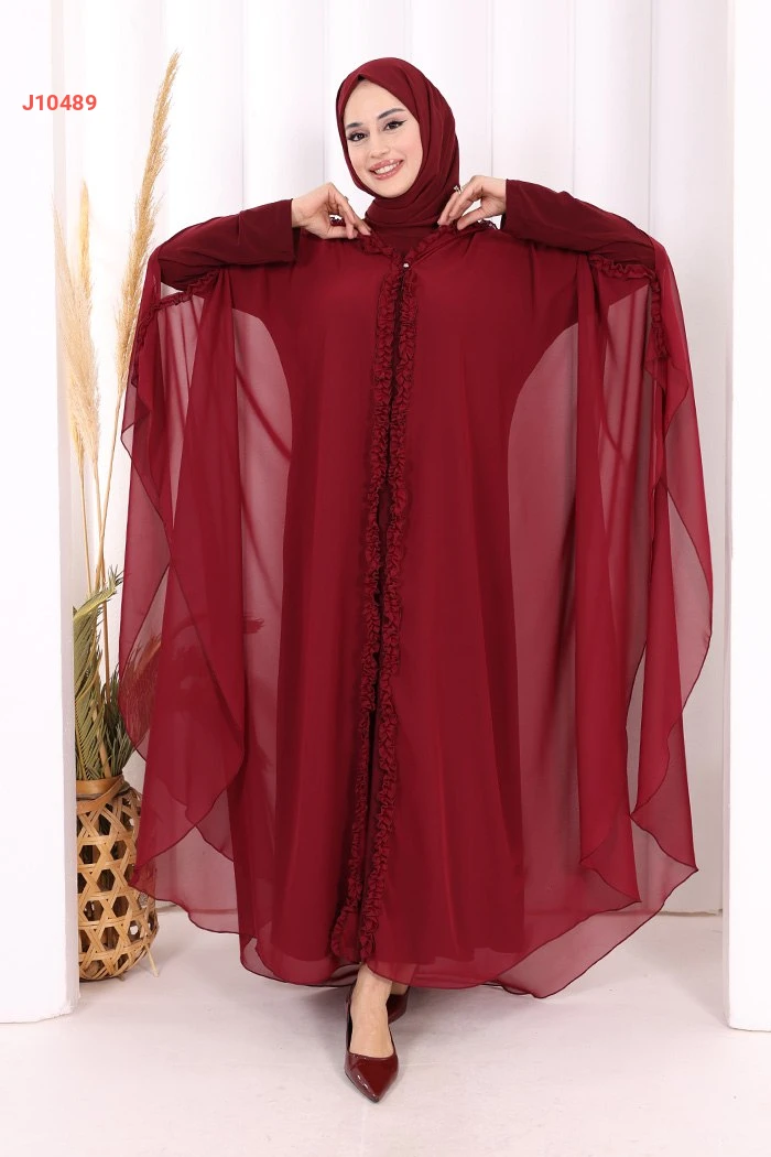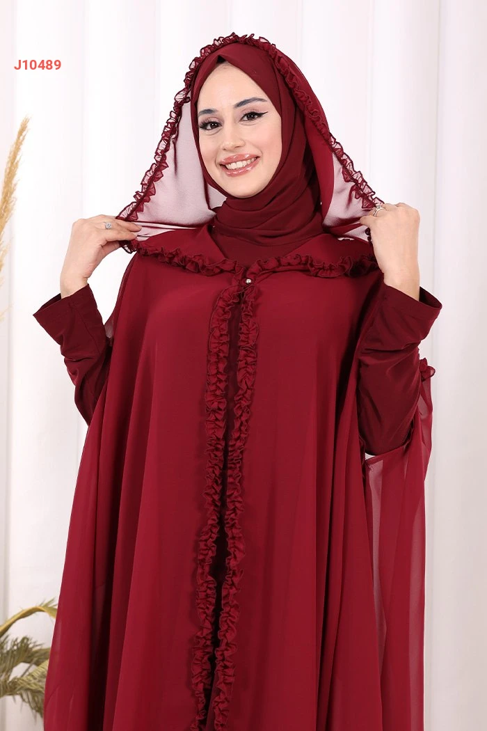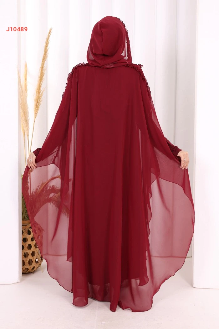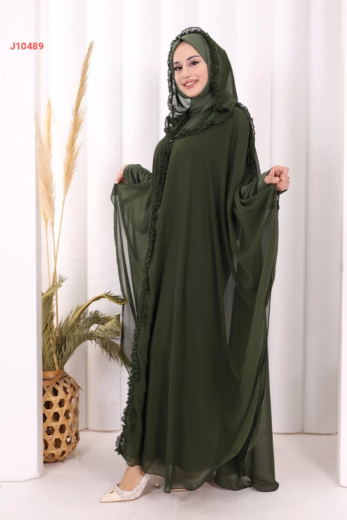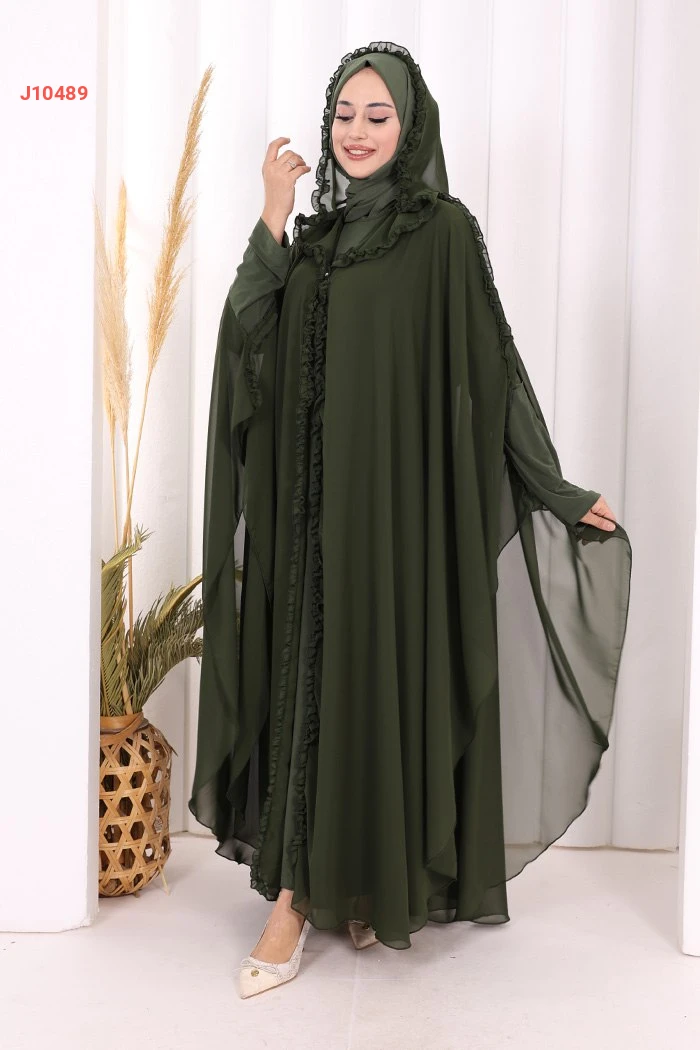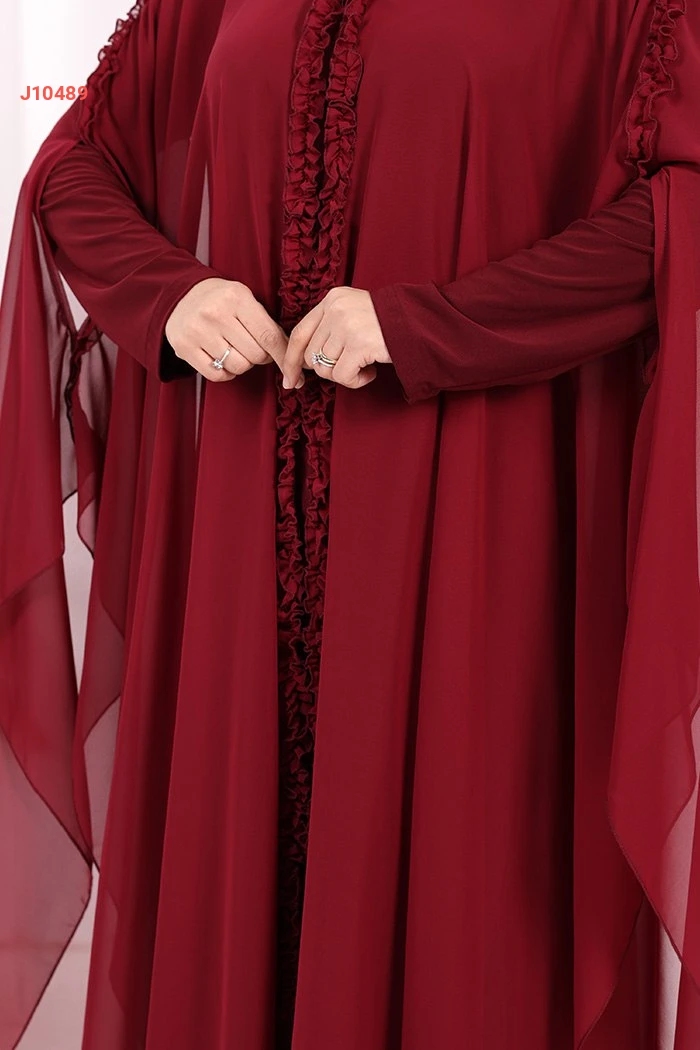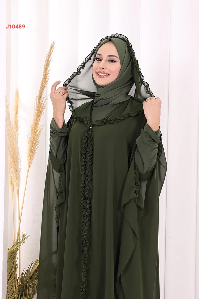 طقم عباية فراشة بغطاء رأس مكشكش مع فستان سادة