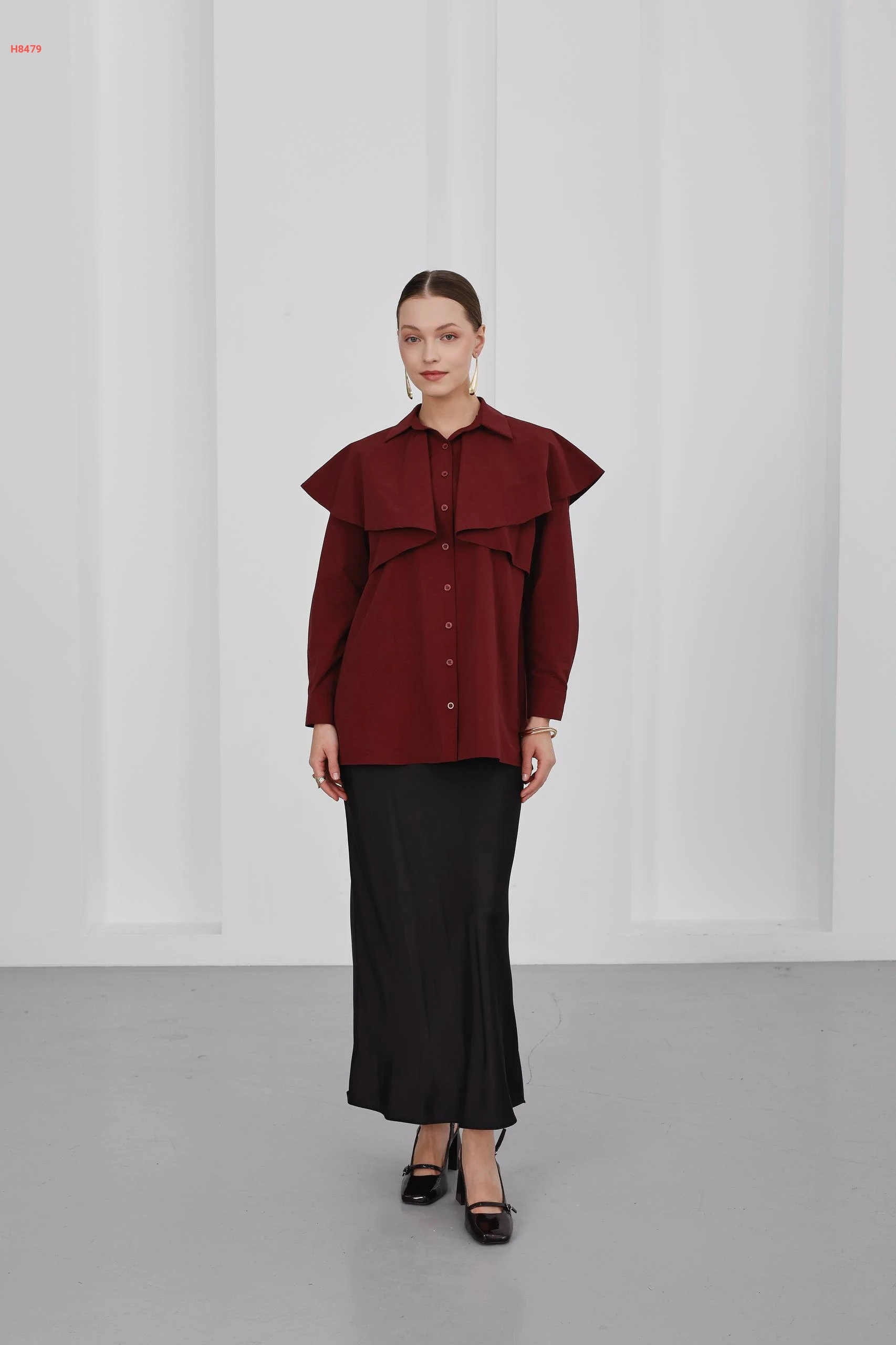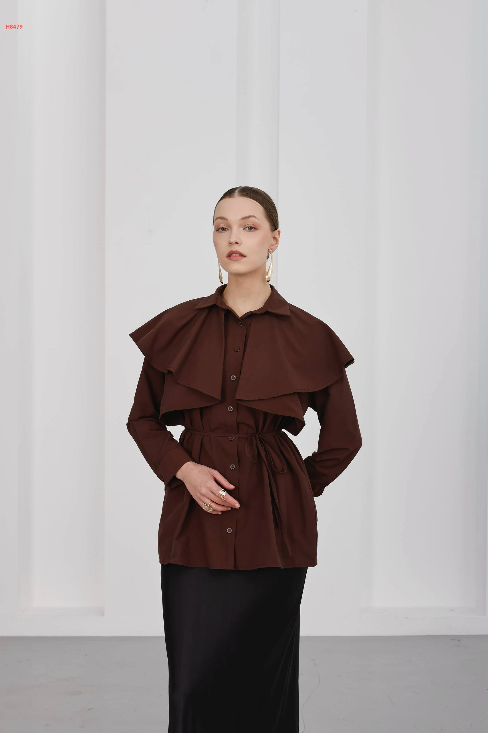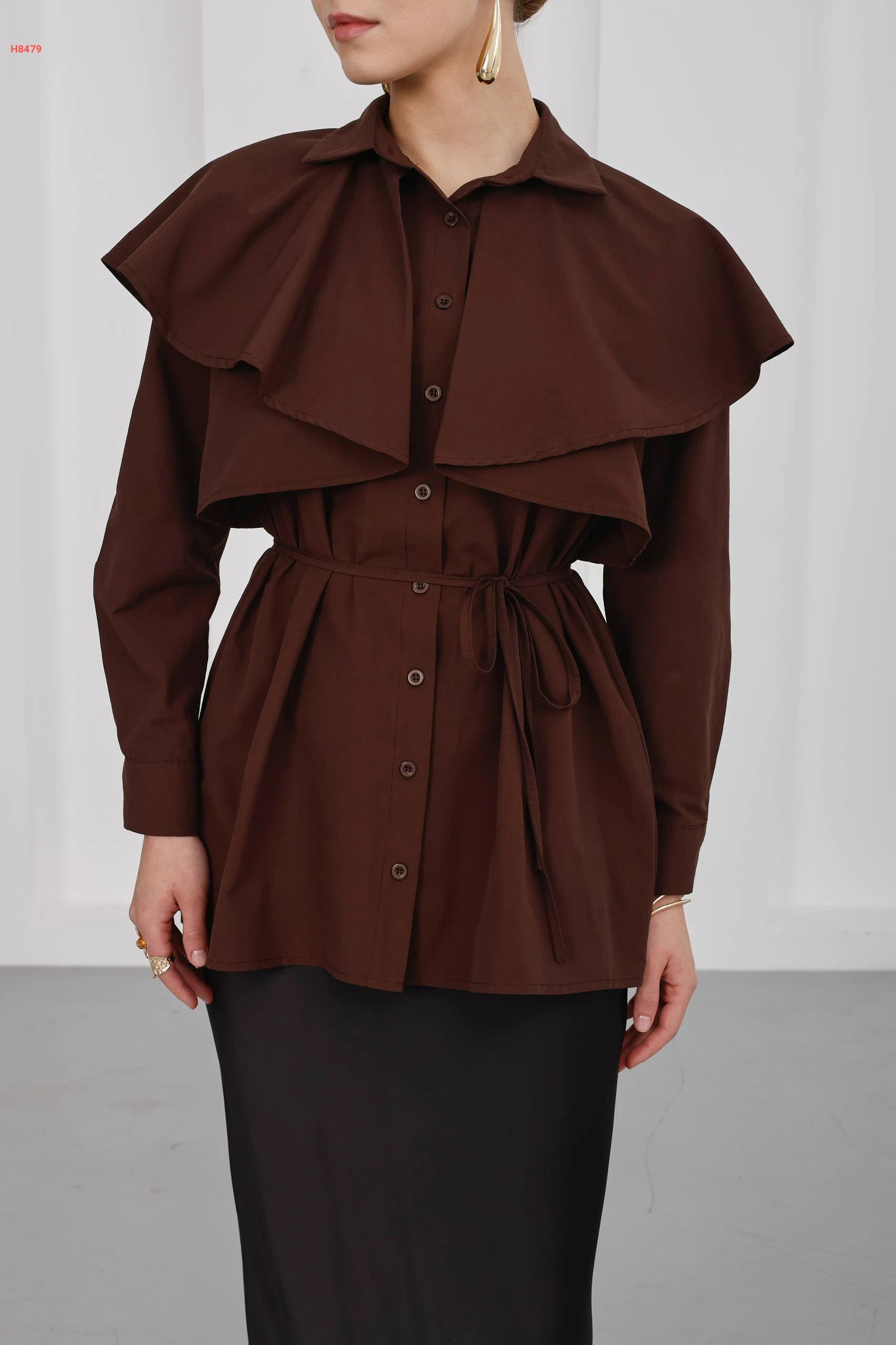 قميص بأزرار كاب مع ربطة خصر