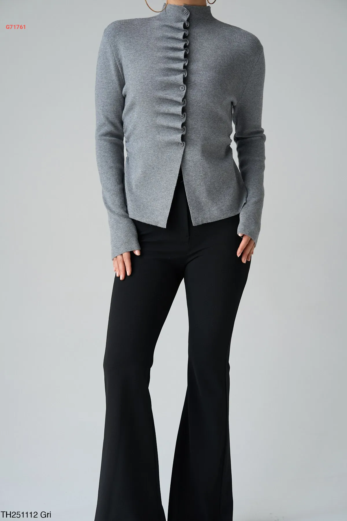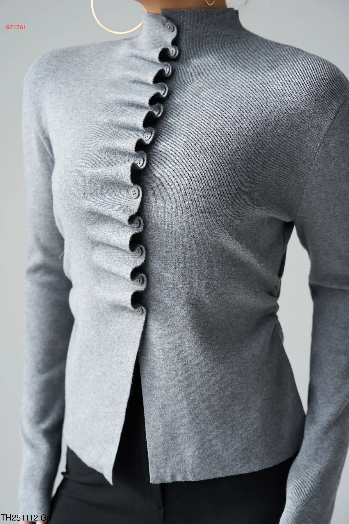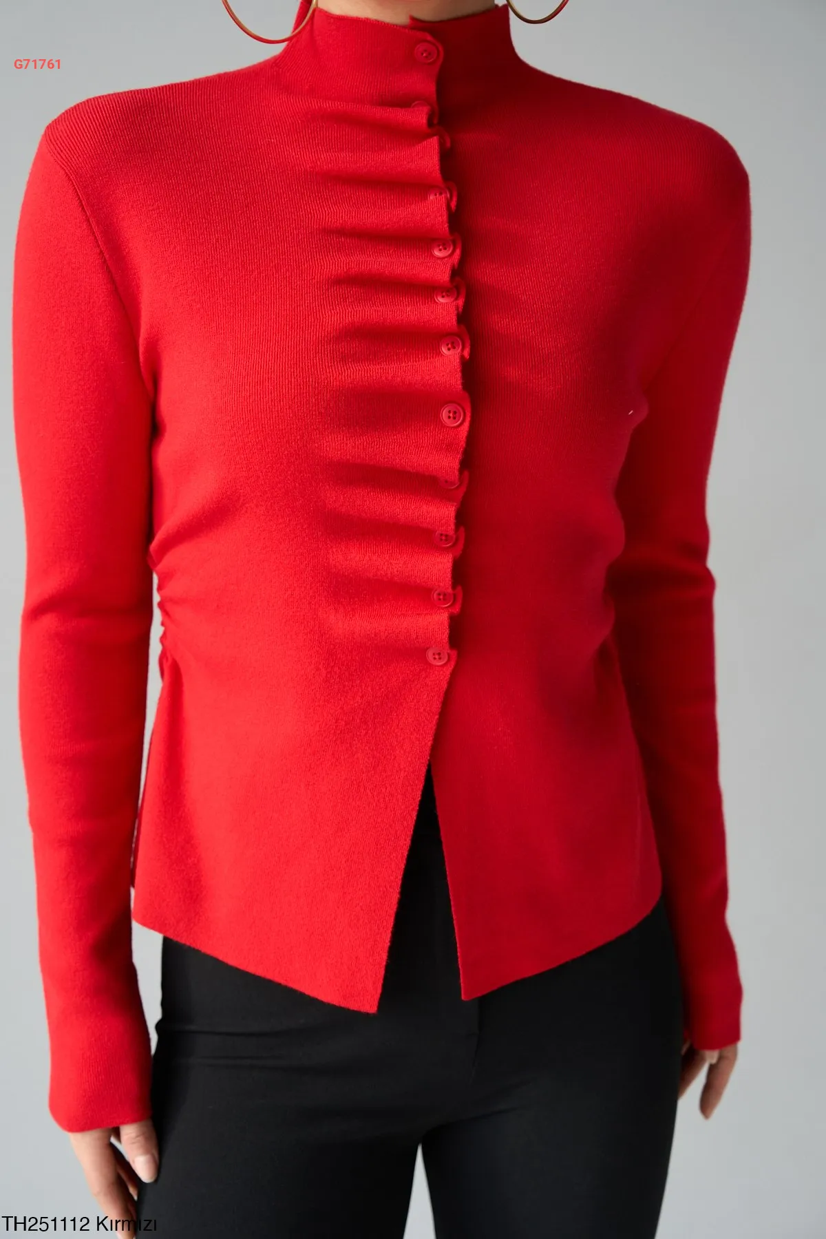 بلوزة تريكو مجمعة بأزرار
