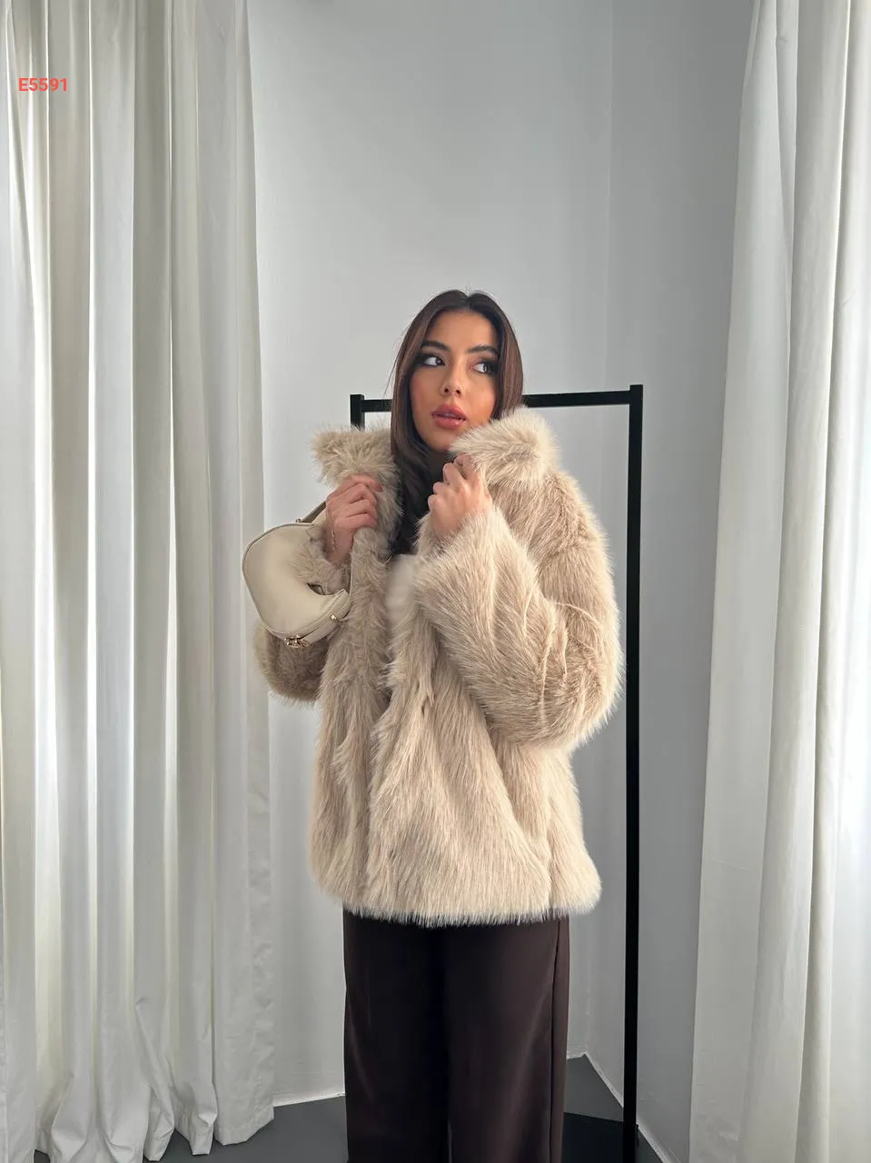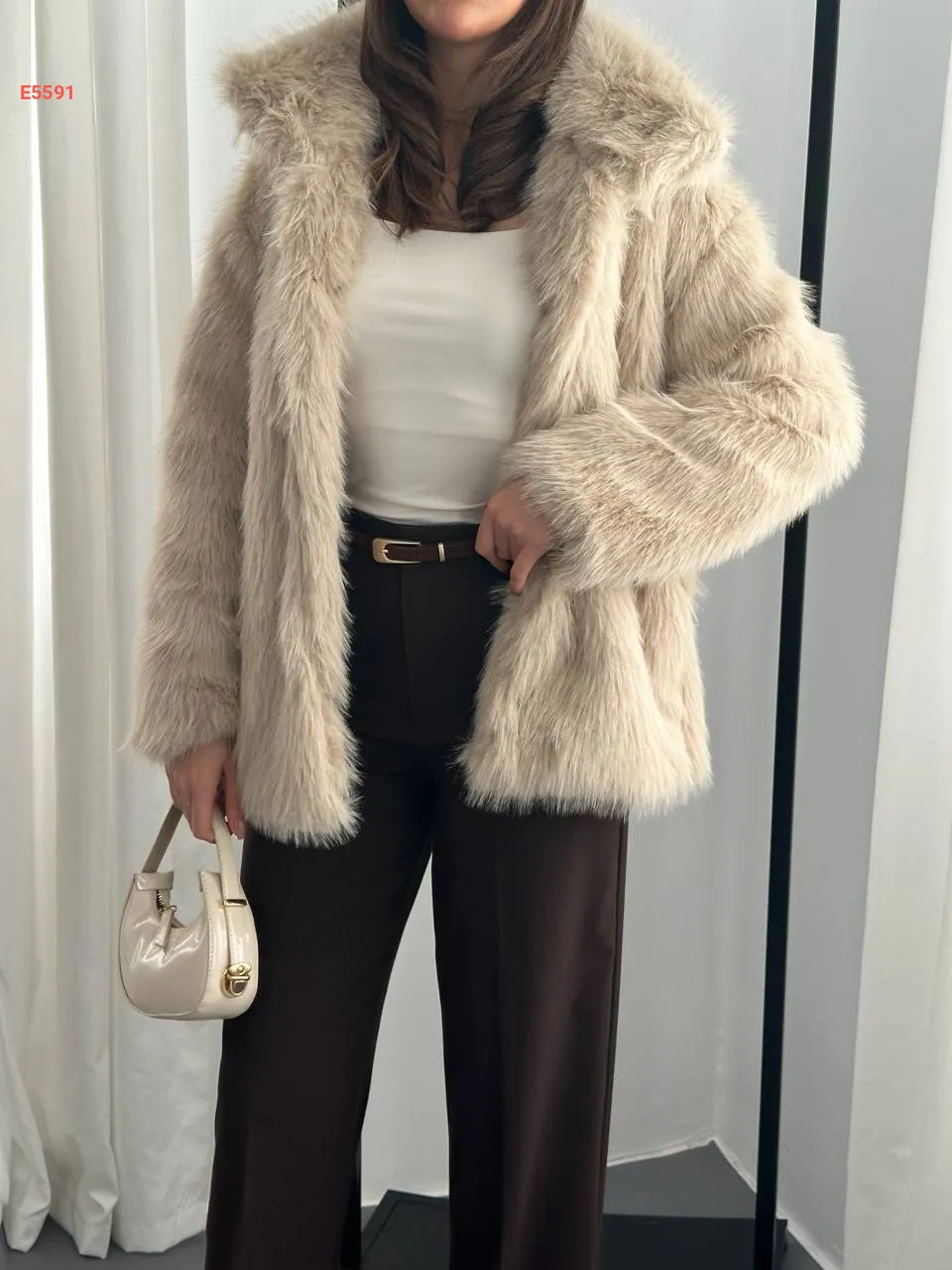 معطف فرو بلا أزرار