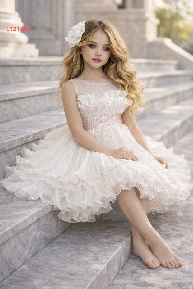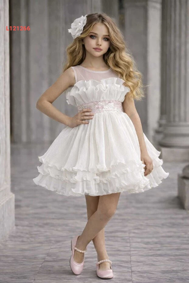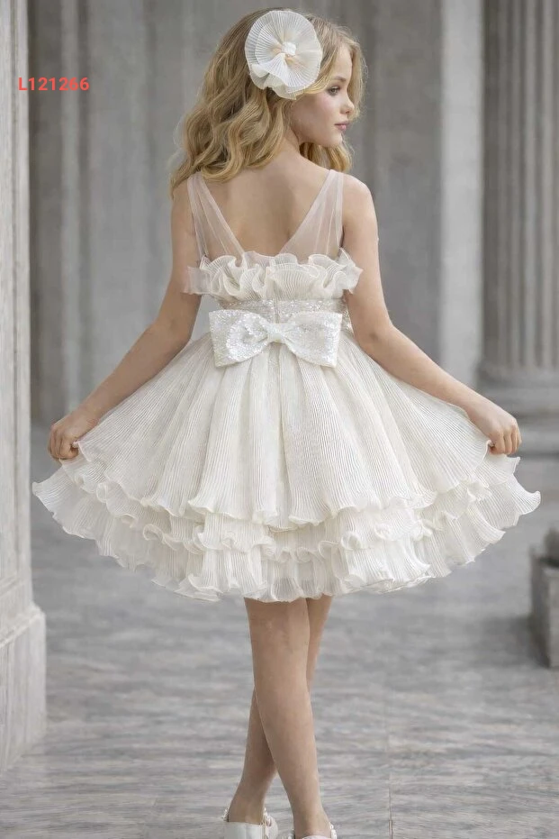 فستان الأميرة الأبيض للأطفال من مجموعة فيزا مع ربطات ساحرة وتصميم خاص مع هدية توكة