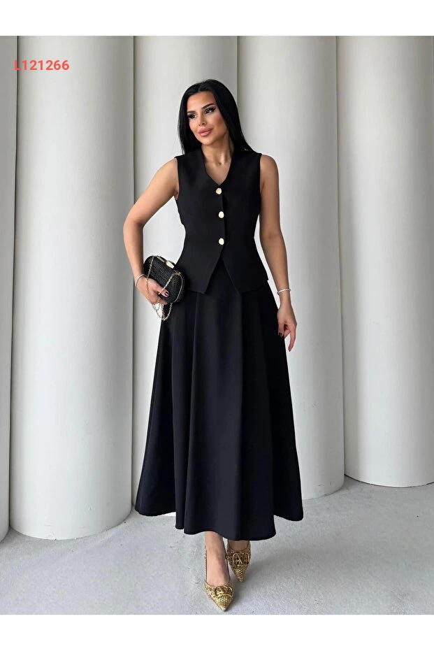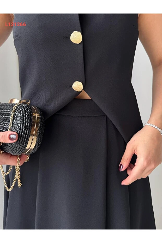 استمتعي بأناقتك مع طقم "Nadia" من تصميم كادري يلماظ، الذي يتضمن يليك أنيق وتنورة متناسقة باللون الأسود الجذاب. يجمع هذا الطقم بين الأناقة والراحة، مما يجعله الخيار المثالي للمناسبات الرسمية أو السهرات الليلية. بفضل تصميمه العصري، ستحصلين على إطلالة تجمع بين الأنوثة والتميز في كل مناسبة.