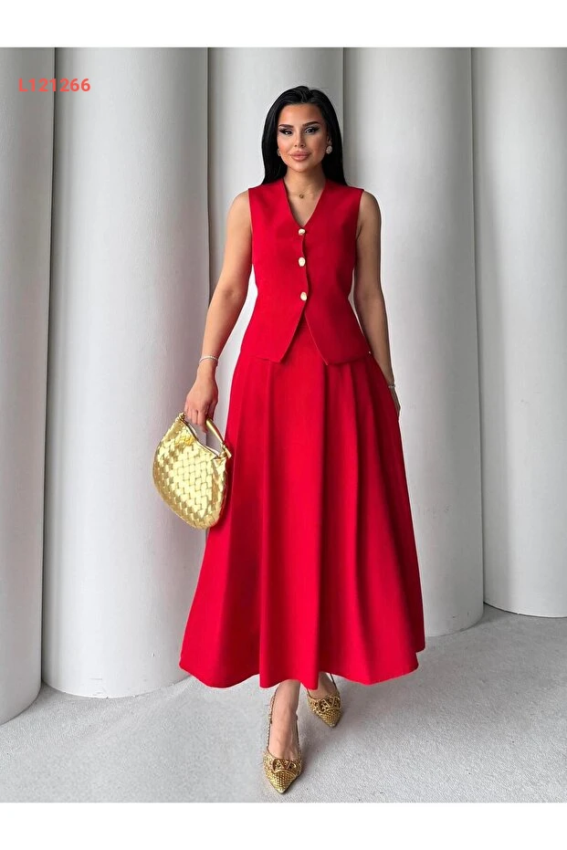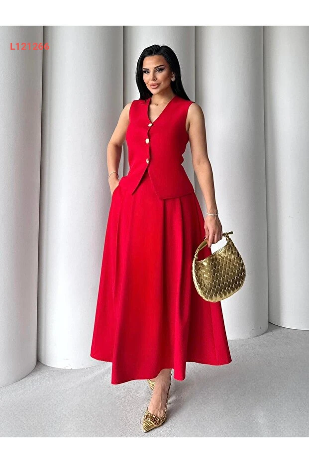 تألقي بأناقتك مع طقم "ناديا" الأحمر من تصميم كادريه يلمز، الذي يجمع بين الأناقة والراحة. يتكون من سترة أنيقة مع تنورة متناسقة، مما يجعله الخيار المثالي للمناسبات الخاصة أو لإطلالة يومية مميزة. مصنوع من أقمشة عالية الجودة، يوفر لكِ راحة كبيرة ومظهرًا جذابًا في آن واحد.