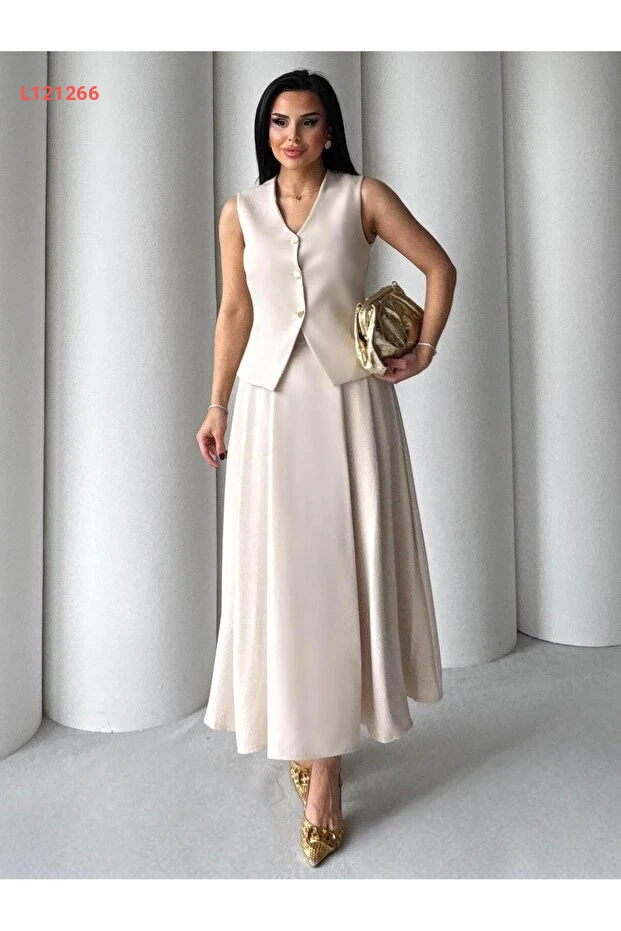 استمتعِ بإطلالة أنيقة ومميزة مع مجموعة "ناديا" من كادريه يلماز، التي تضم سترة مع تنورة متكاملة بلون الحجر الرائع. تُبرز هذه المجموعة جمالك بأسلوب متطور، حيث تجمع بين الأناقة والراحة، مما يجعلها مثالية لكل المناسبات. ارتديها مع إكسسوارات بسيطة لتزيني بها إطلالتك بأناقة لا مثيل لها.