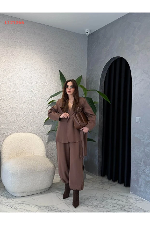 استمتع بأناقة غير عادية مع طقم الجاكيت والسروال من By Merve Darende، حيث يضفي التصميم العصري مع الحزام لمسة فريدة على إطلالتك. مصنوع من خامات عالية الجودة، يوفر لك راحة فائقة وطلة أنيقة تناسب كافة المناسبات. احصلي على إطلالة متكاملة تجمع بين الأناقة والراحة مع كل خطوة تخطينها!
