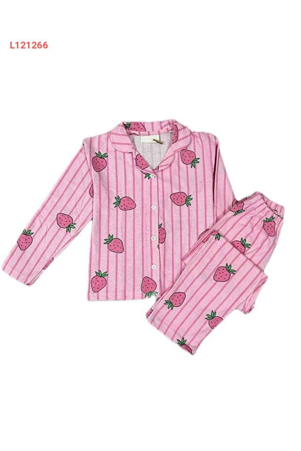 اجعل ليالي طفلك أكثر سحراً مع طقم البيجاما من بايليسمير! مصنوع من قماش السوبرم 100% من القطن، يأتي هذا الطقم بتصميم جميل بتفاصيل الفراولة الوردية، مما يضمن راحة مطلقة ونوم هانئ. تناسب الأكمام الطويلة وياقة القميص مثالي ليمنح صغيرك لمسة من الأناقة والراحة في كل ليلة.