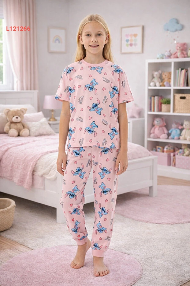استمتع براحة النوم مع طقم البيجاما للأطفال من byalisdmr! مصنوع من 100% قطن سوبرم، يتميز بنقوش جذابة من الستايش والقلوب، ليضفي لمسة من المرح على ليالي نوم طفلك. بفضل تصميمه ذو الأكمام القصيرة وفتحة العنق بشكل بياكلت، يعد الخيار المثالي لصيف مريح وأنيق.