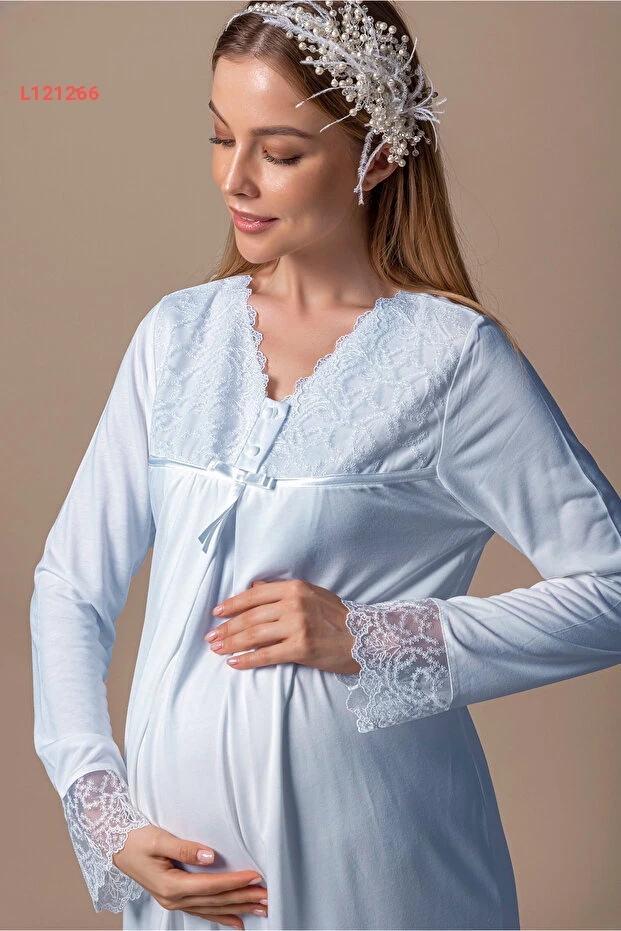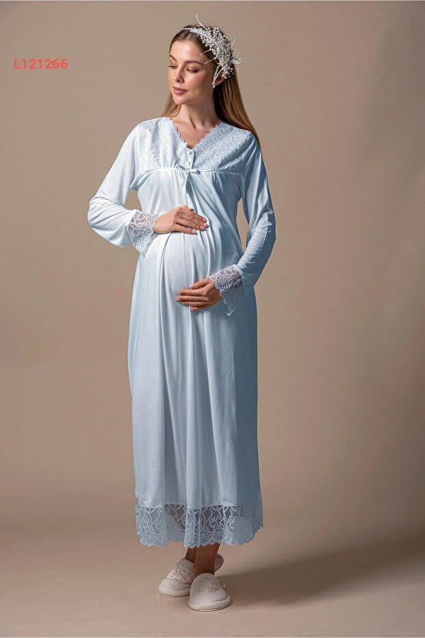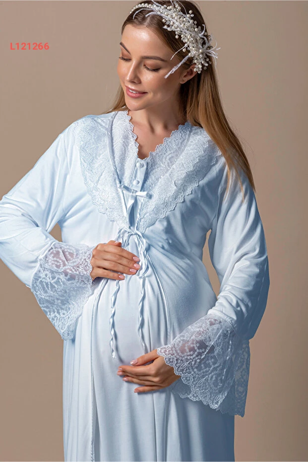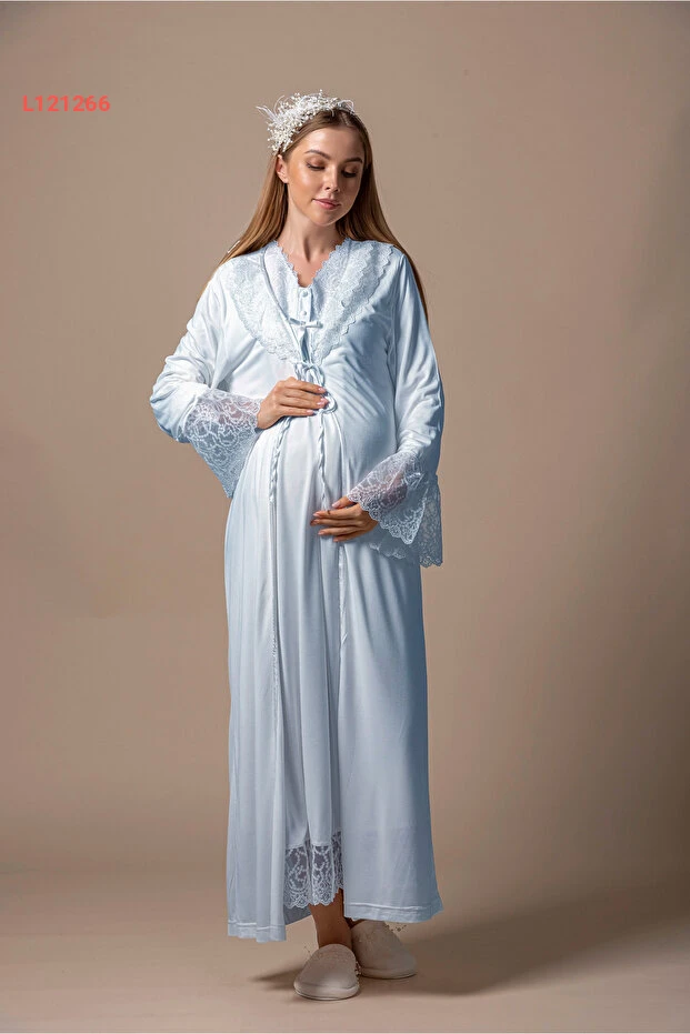 مجموعة ازياء الأمومة زرقاء مع ثوب صباحي وبيجامة جديدة للولادة