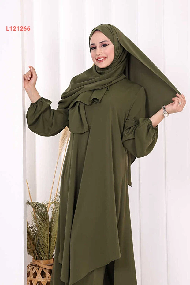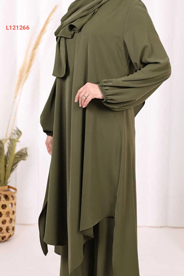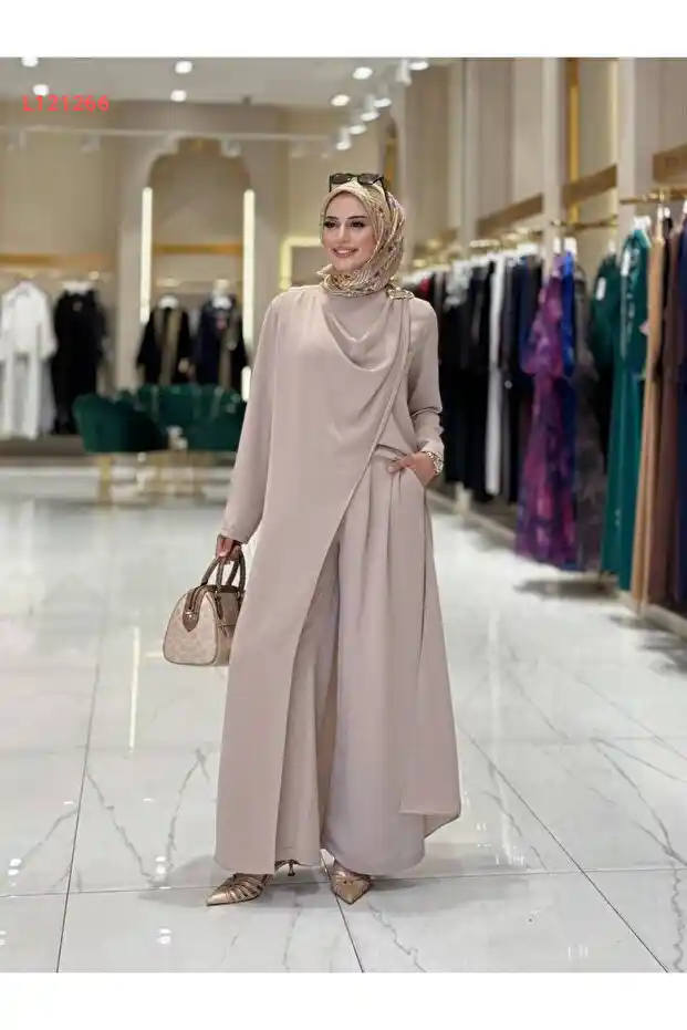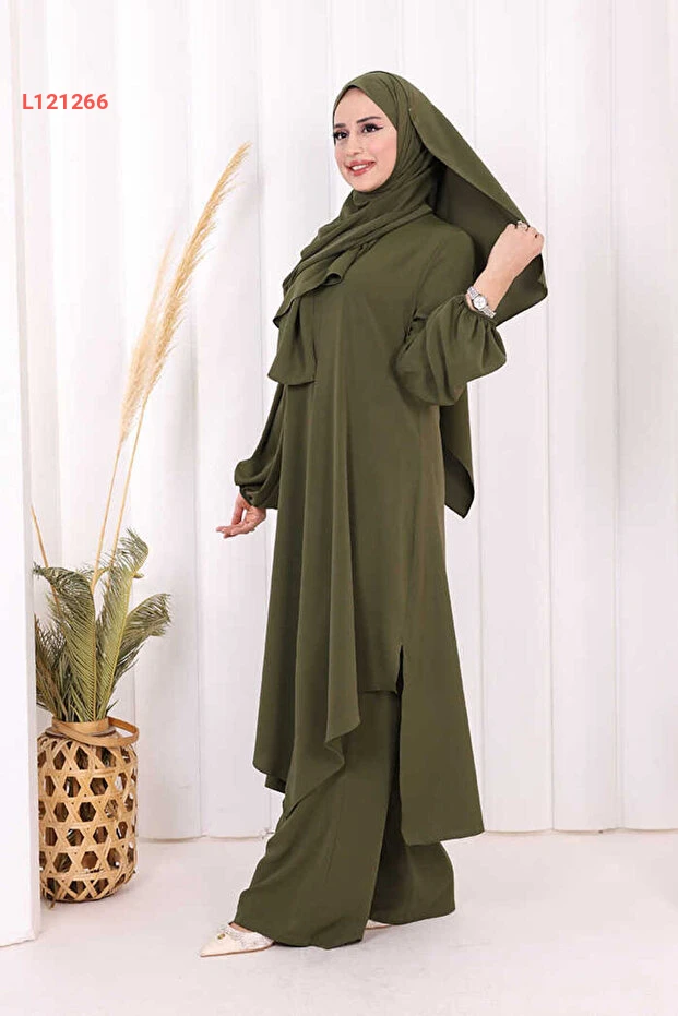 استمتع بأناقة لا تضاهى مع مجموعة Bym Fashion المكونة من تونيك وبنطلون، المصممة بلون الهاكي العصري. يجمع هذا الأزياء بين الراحة والفخامة، ليمنحك إطلالة مميزة تناسب كافة المناسبات. ومع الشال المهدي كهدية، ستزدادين تألقاً وجاذبية في كلّ لقاء!