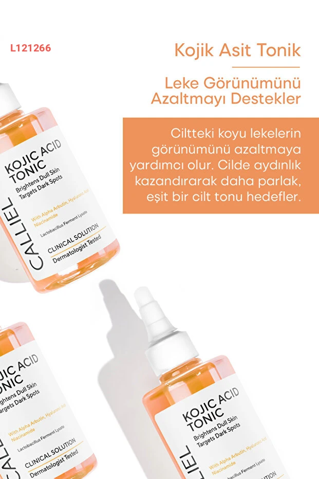 اكتشف إشراقة بشرتك مع تونر CALLİEL المضيء، الذي يحتوي على حمض الكوجيك الفعال! بفضل تركيبته الفريدة، يعمل على تقليل البقع الداكنة والرؤوس السوداء، مما يمنحك بشرة أكثر صفاءً وتألّقًا. بالإضافة إلى ذلك، يساعد في تحسين نسيج الجلد ويعزز من إشراقة الوجه بشكل ملحوظ.