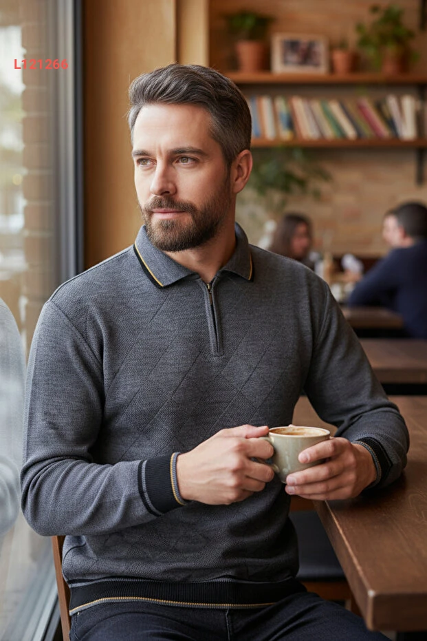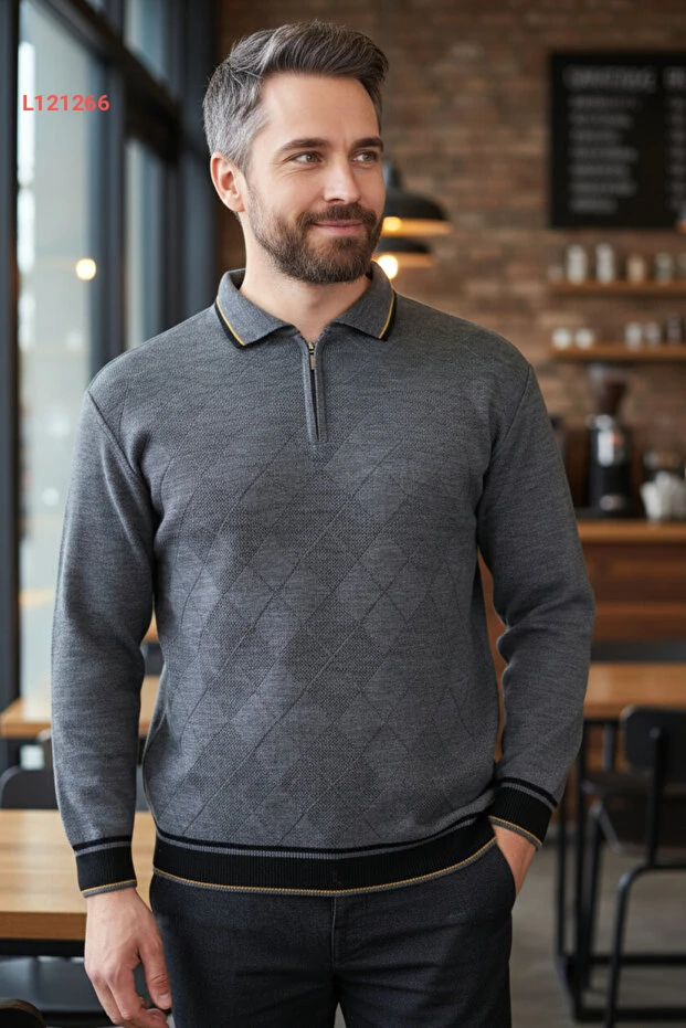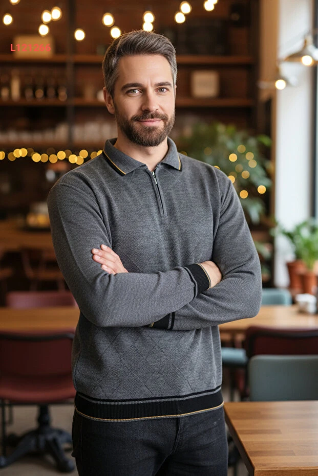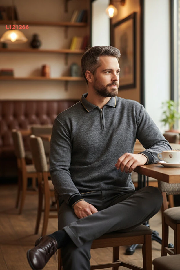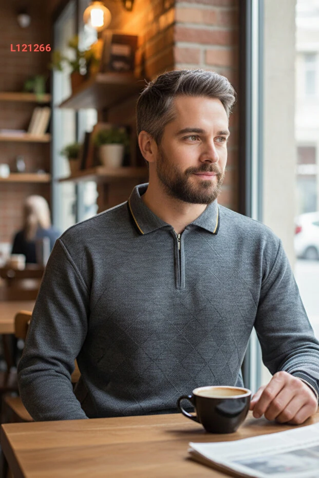 اكتشف أناقة الراحة مع سترة بولو الكلاسيكية للرجال، المصنوعة من قماش رمادي فاخر يمنع التكتل لضمان مظهر دائم وأنيق. تصميمها القياسي يتناسب مع جميع الأجسام، مما يجعلها الخيار المثالي لجميع المناسبات، سواء كانت يومية أو رسمية. احصل على الدفء والأناقة مع لمسة مميزة من الفخامة في كل ارتداء!