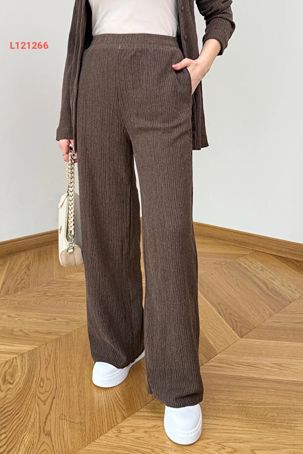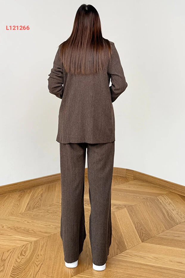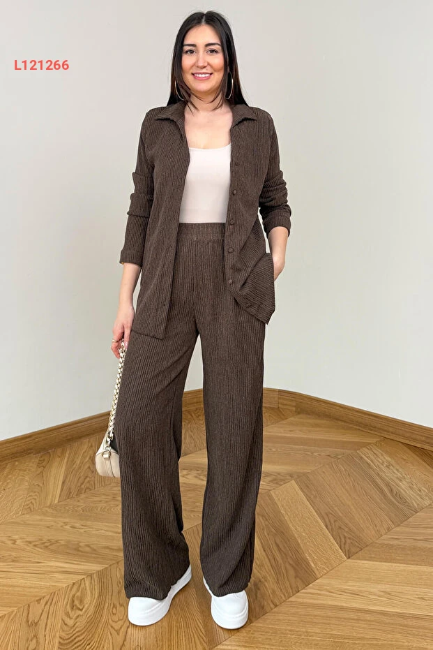 طقم قمصان وبنطلون بني مزخرف بقماش مموج من كابومودا TKM-7187