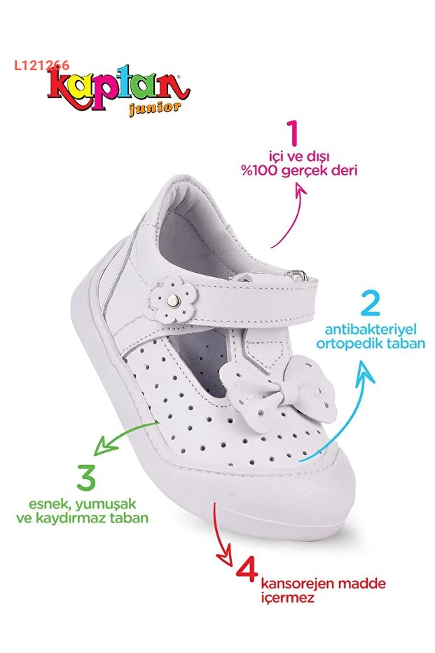 أحذية KAPTAN JUNIOR الأولى للبنات الصغيرة مصنوعة من الجلد الطبيعي الفاخر، مما يضمن الراحة والدعامة المثالية لأقدام الأطفال. تصميمها ortopedik يوفر الدعم المثالي للنمو السليم، بينما تضفي الألوان الزاهية لمسة جمالية تضفي السعادة على كل خطوة. اجعل كل لحظة من خطوات طفلتك مميزة وآمنة مع هذه الأحذية الأنيقة!