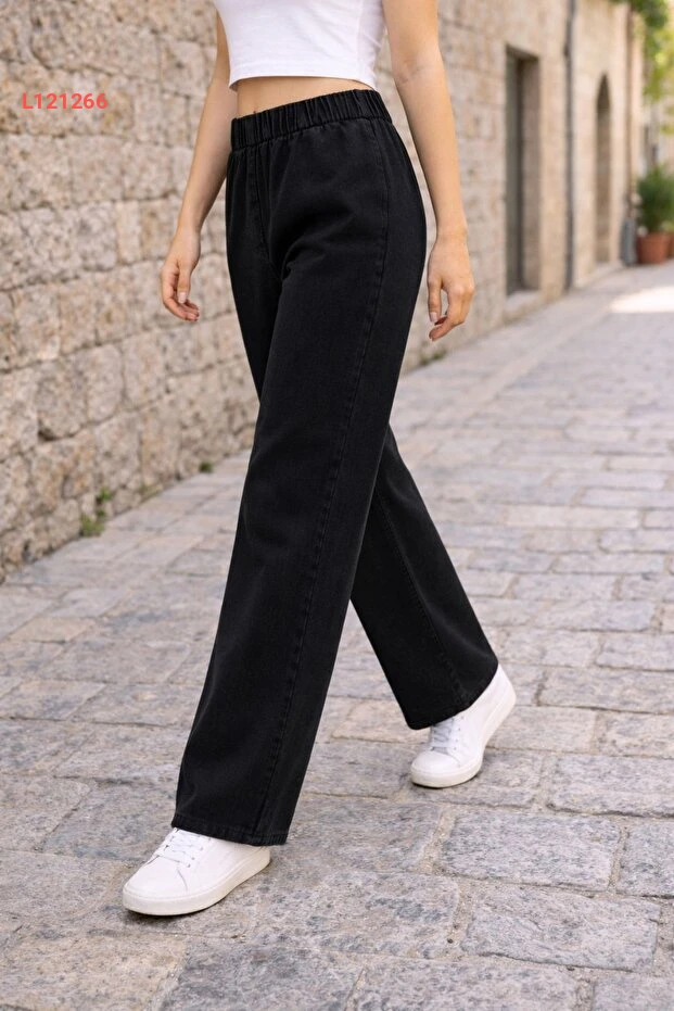 استمتع بالراحة والأناقة مع بنطال "CEDY DENIM" الأسود المصنوع من قماش ليكرالي المتين، والذي يأتي بتصميم بلازو عصري خالٍ من الجيوب. بفضل الخصر المرن، سيوفر لك هذا البنطال تحديًا رائعًا في الحركة ويضمن لك إطلالة مريحة وجذابة في جميع المناسبات. ارتديه مع أي قطعة فاخرة لتكوني دائمًا في صدارة الأناقة.