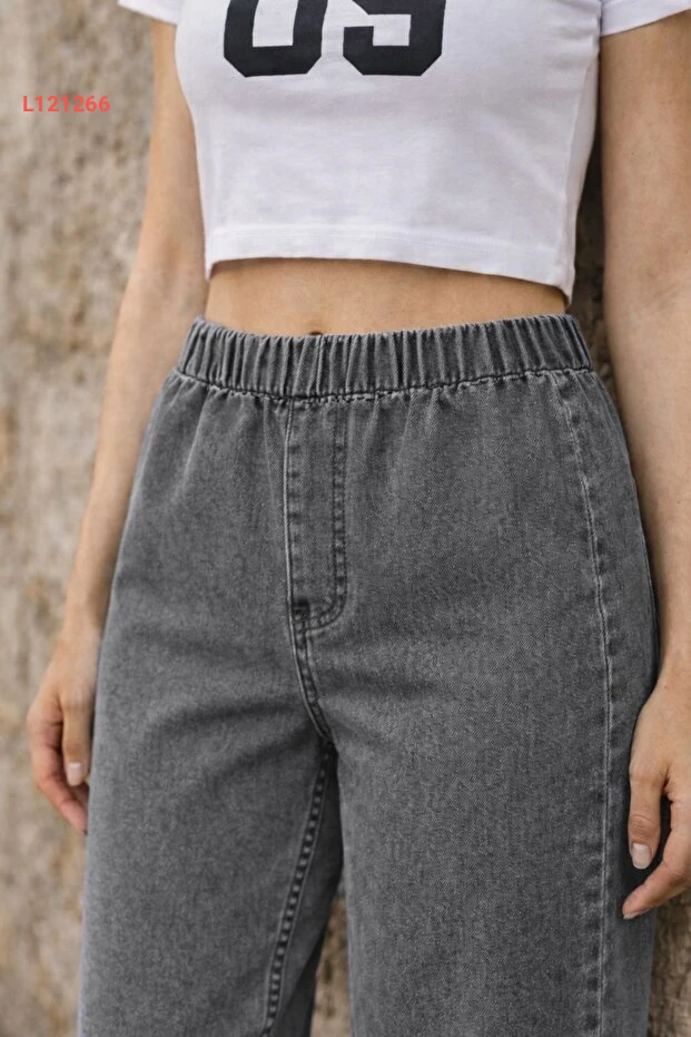 بناطيل بالاسو الخالية من الجيوب بخصر مطاطي من قماش الدينيم الليكرا - رمادي فاتح
