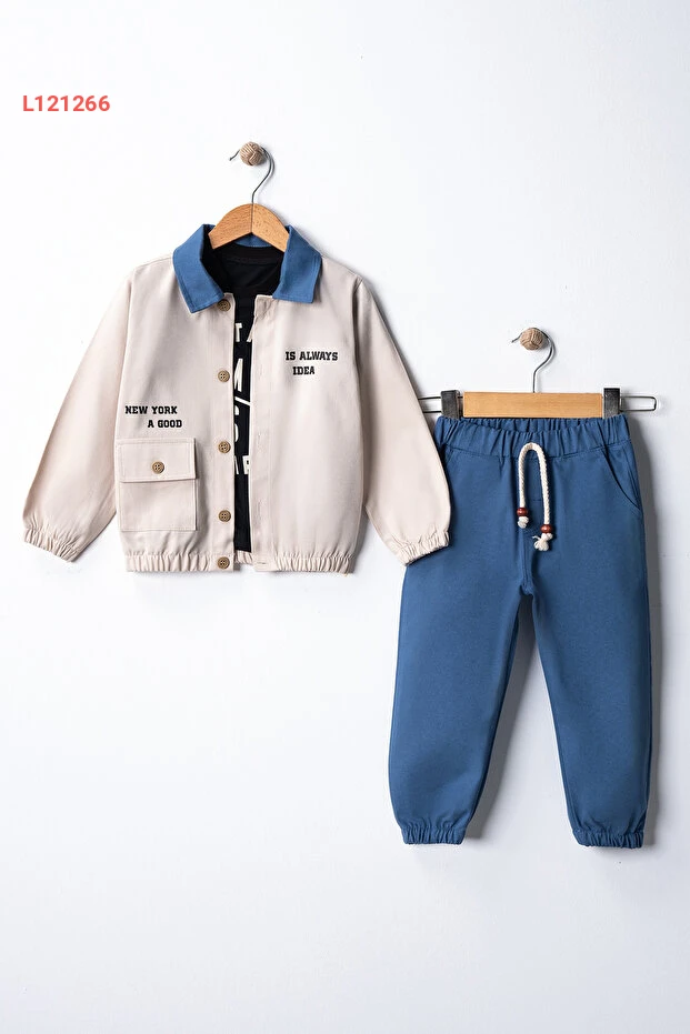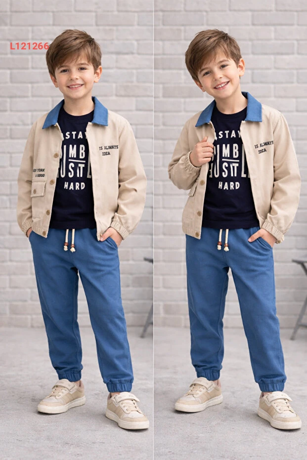 بدلة عيد للأطفال الأولاد: جاكيت جاباردين وسروال جوجر ثلاثي القطع