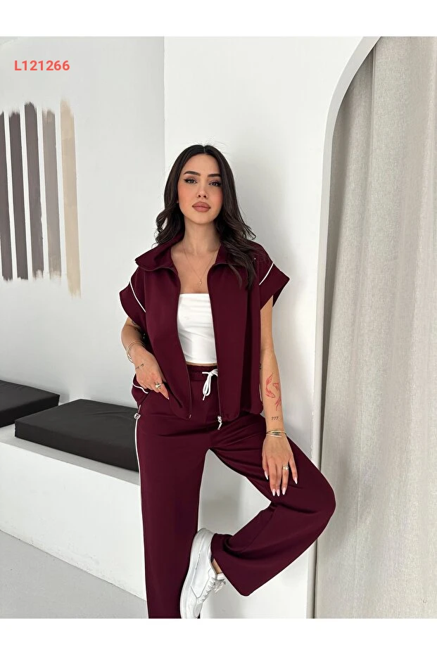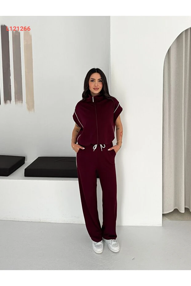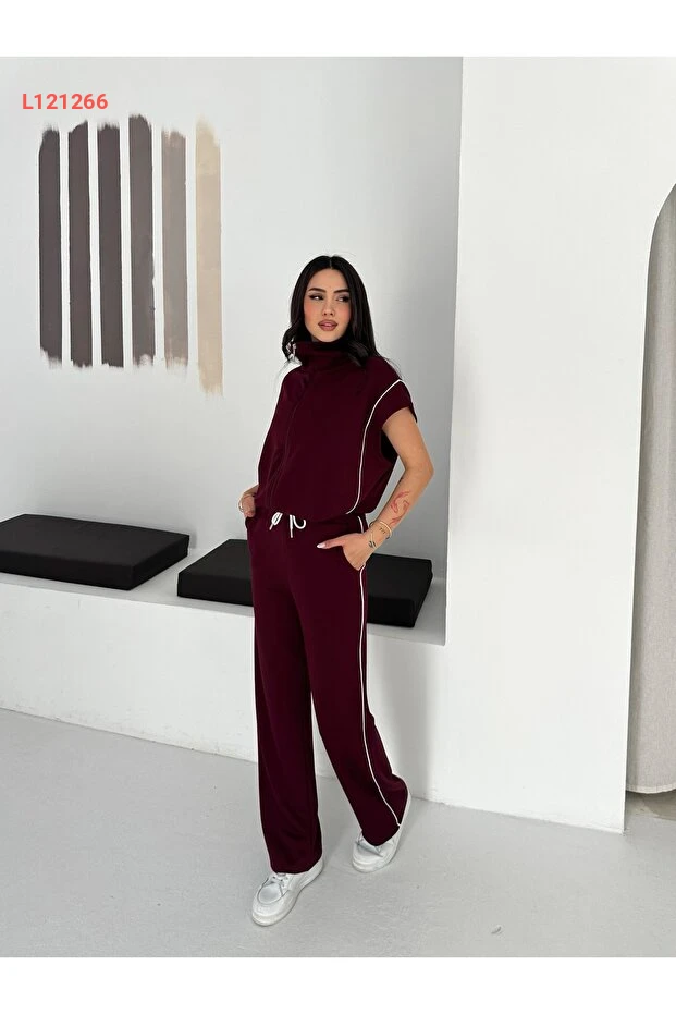 طقم رياضي نسائي واسع بدون أكمام بياقة مرتفعة من قماش مودال من سيي مودا