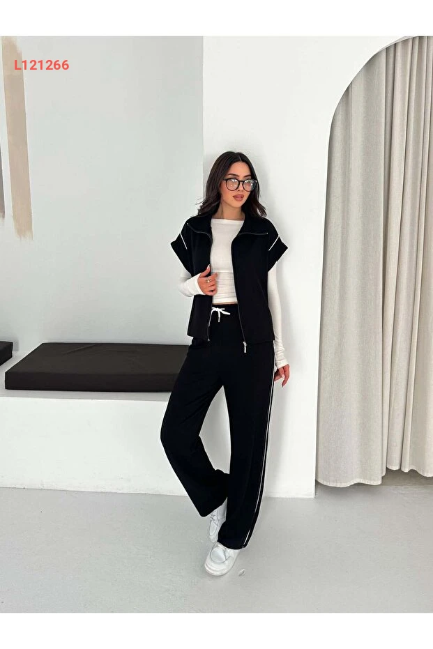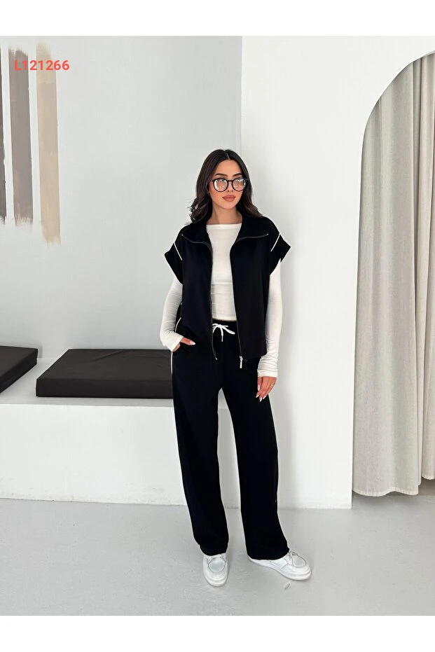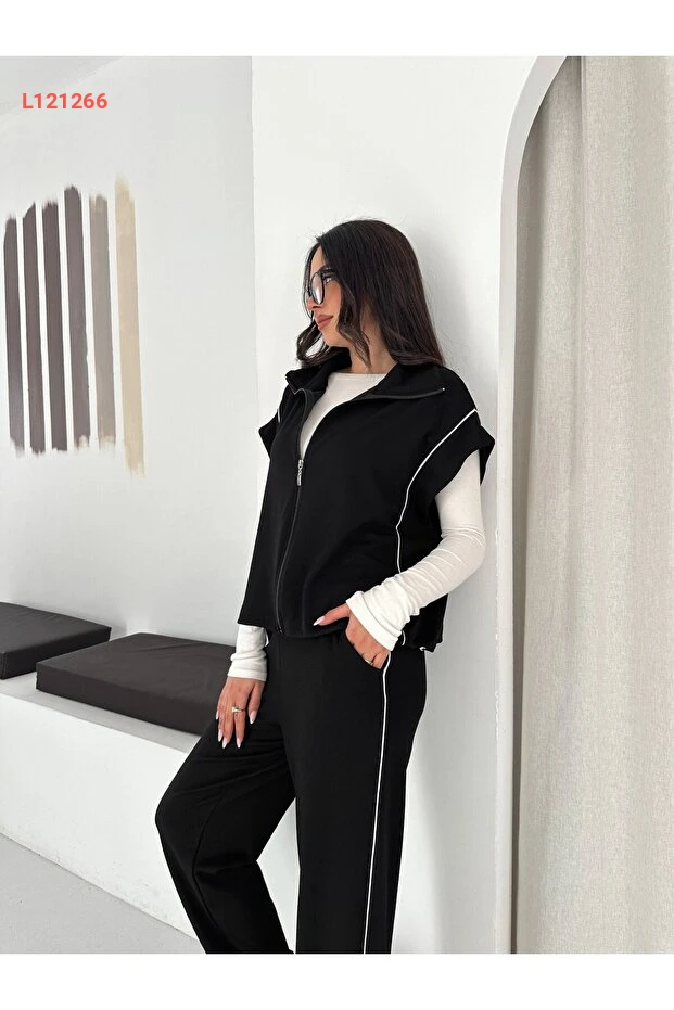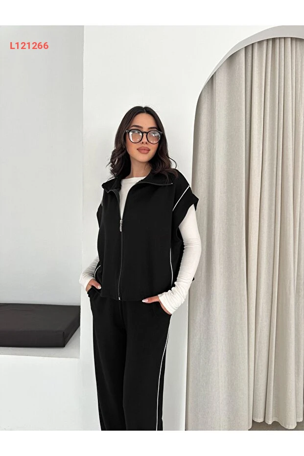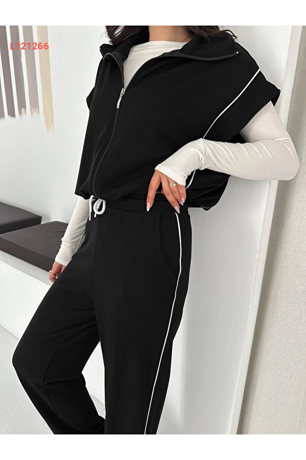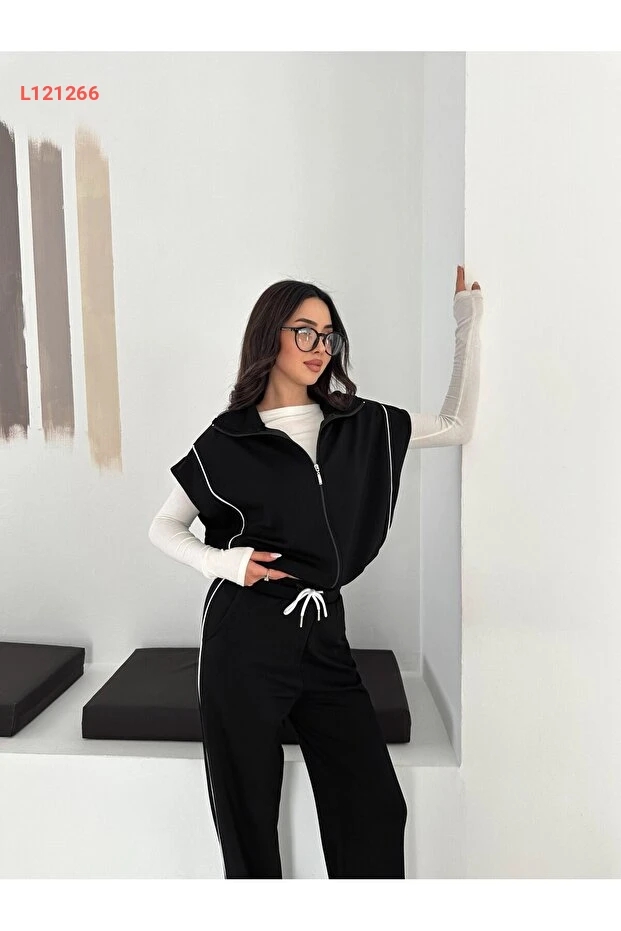 أطقم رياضية نسائية بحرفية مودال مع ياقة مرتفعة بدون أكمام