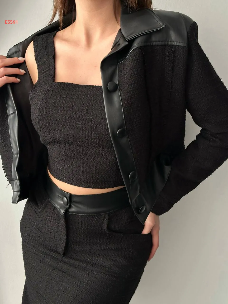 طقم تنورة شانيل 3 قطع مكلف جلد
