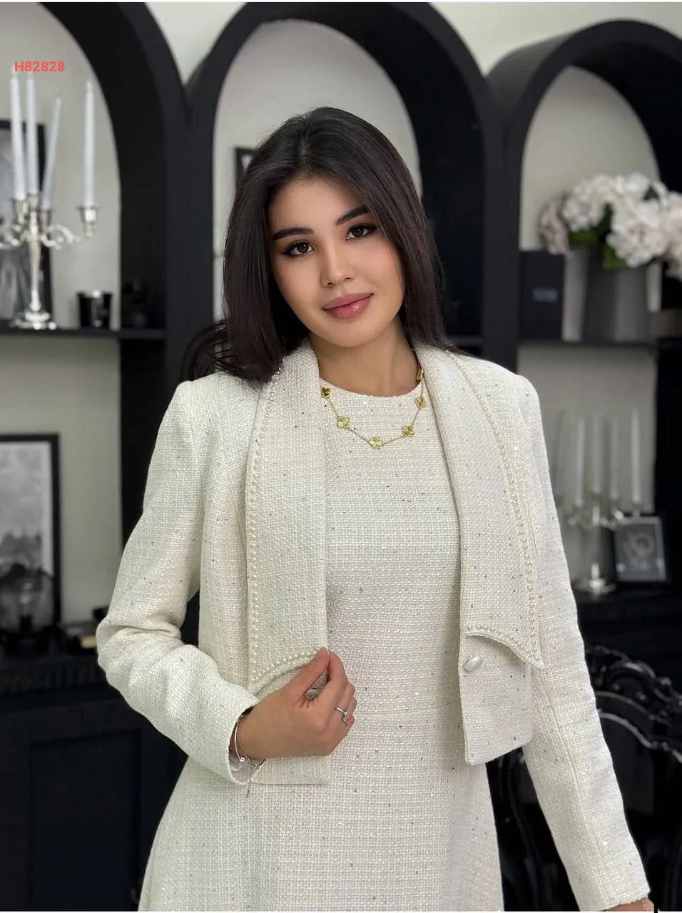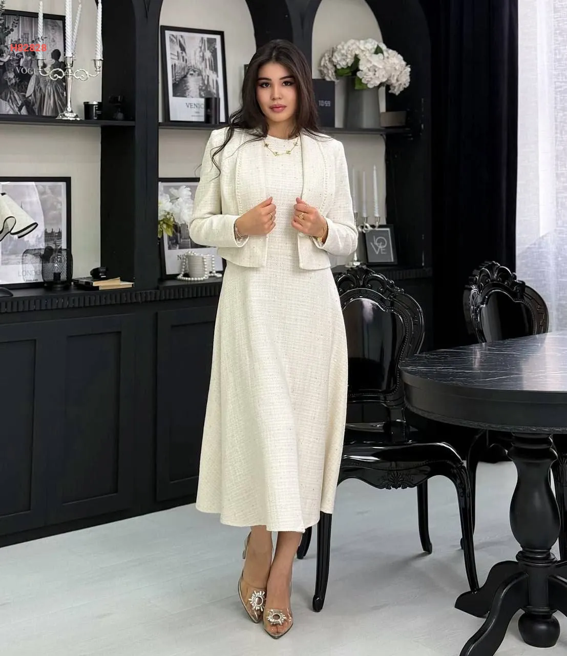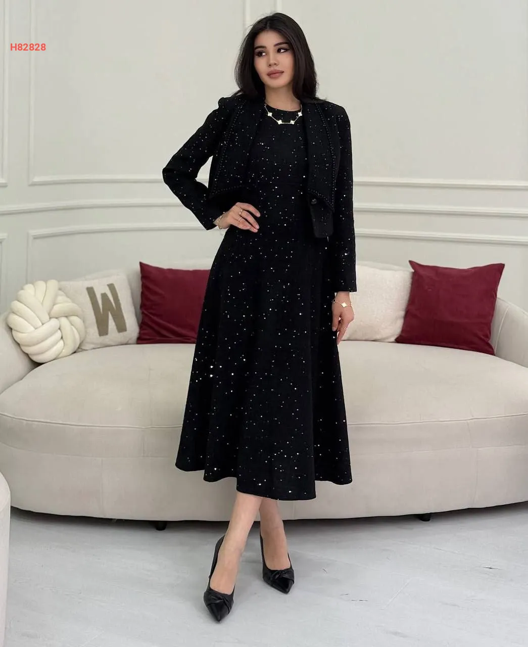 فستان شانيل مطرز بالترتر مع جاكيت