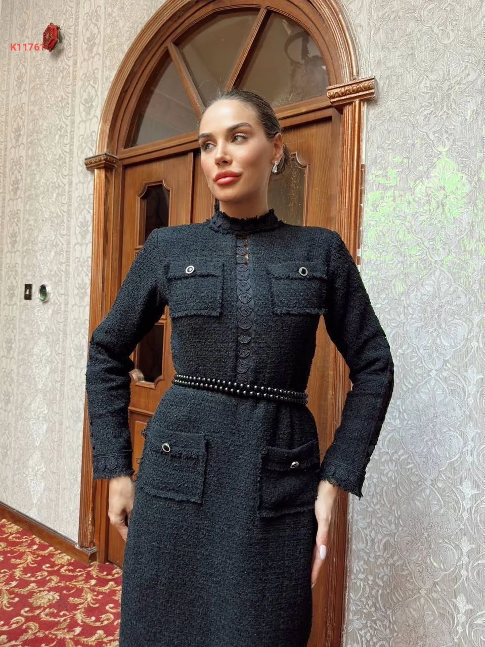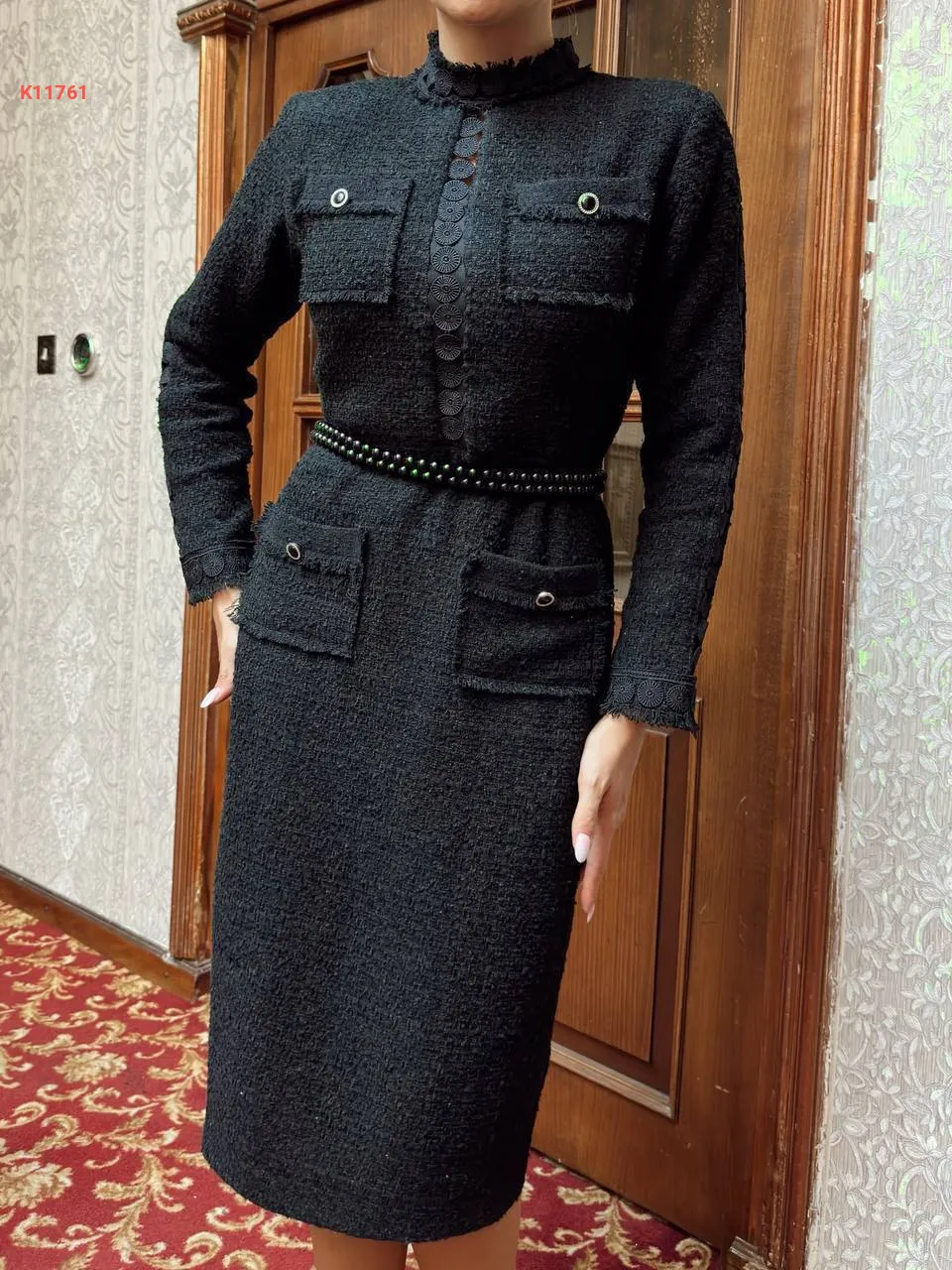 فستان شانيل بجيوب وزنار لولو