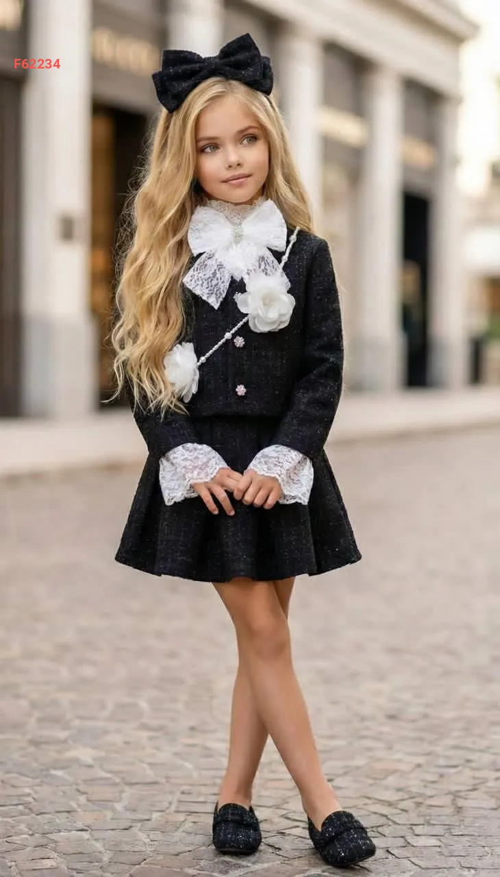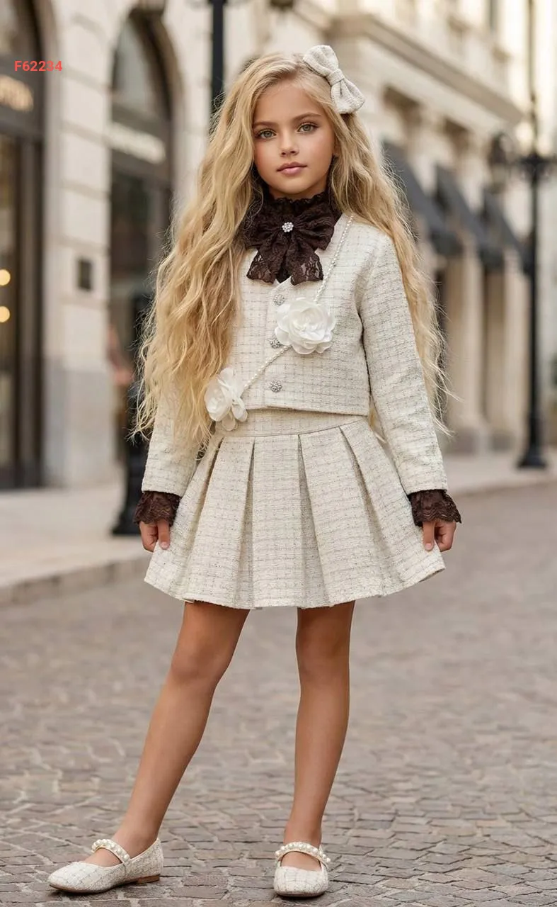 طقم تنورة بناتي شانيل مع اكسسوار