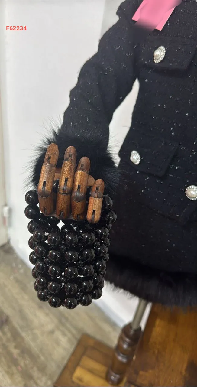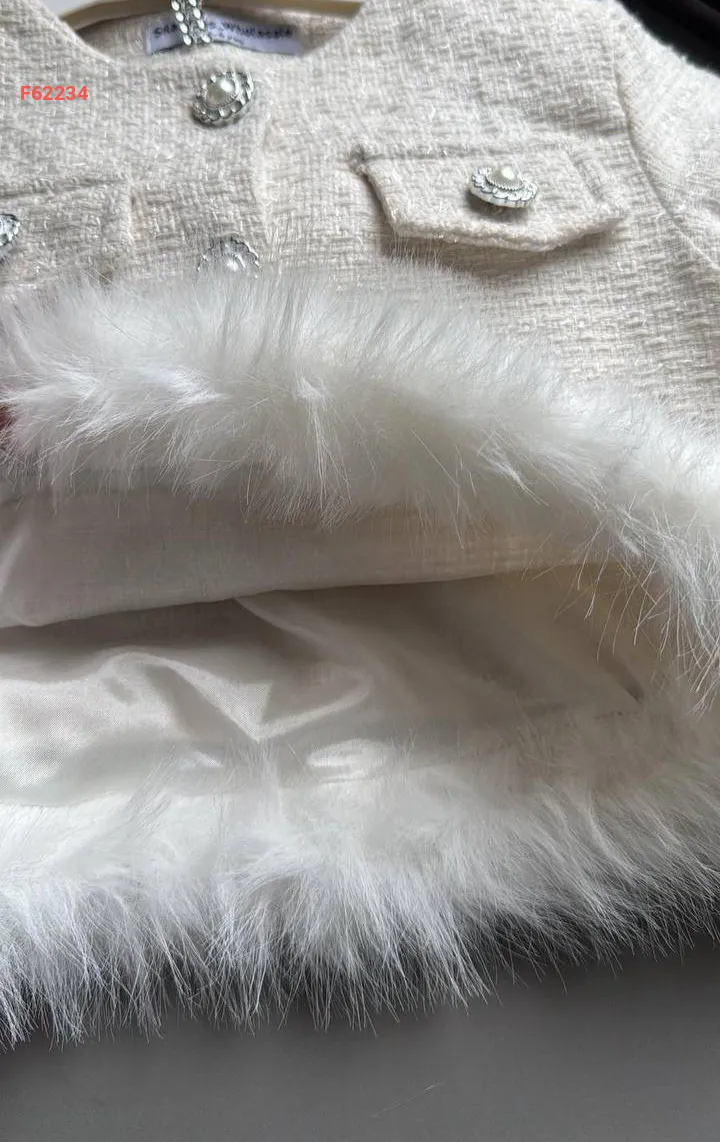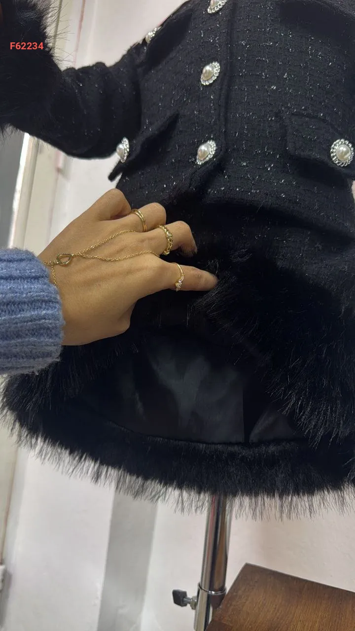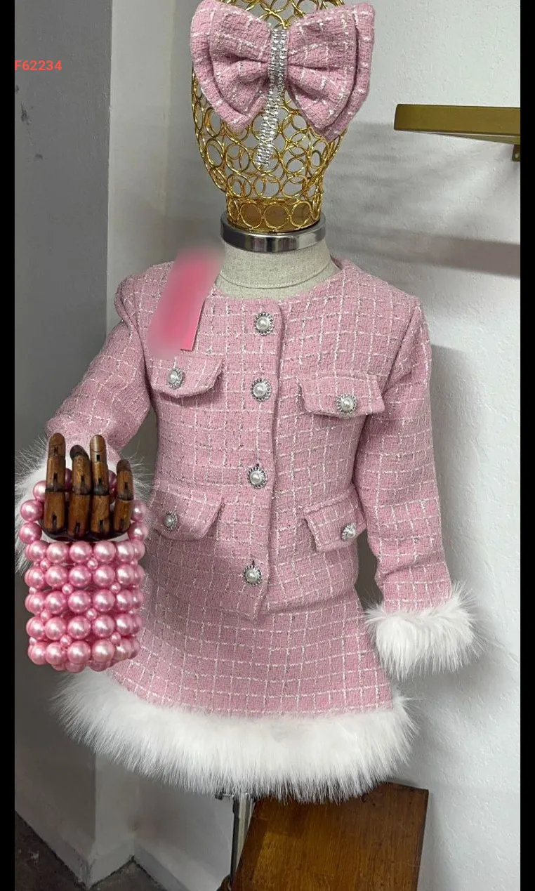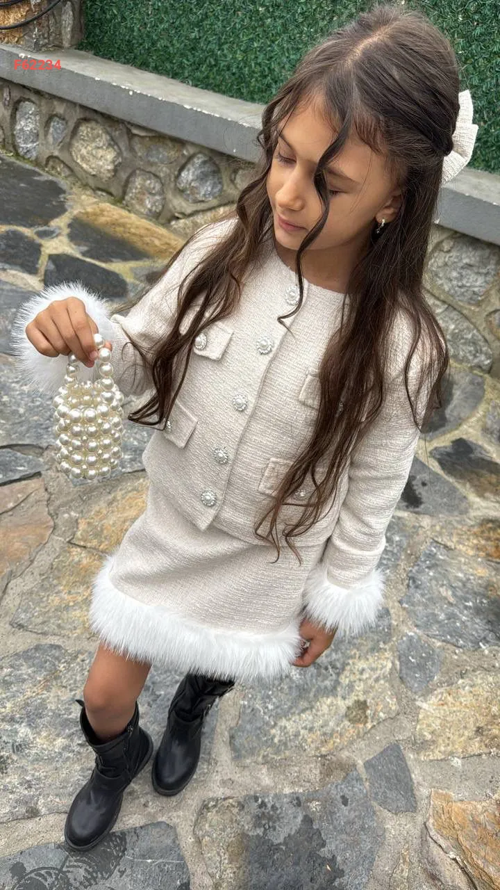 طقم تنورة بناتي شانيل وفرو مع حقيبة