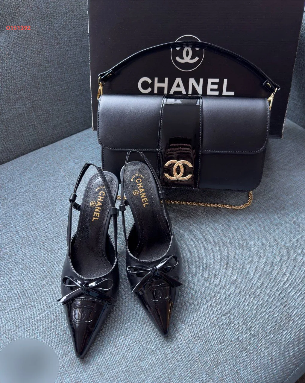 طقم حقيبة وحذاء نسائي ماركة شانيل