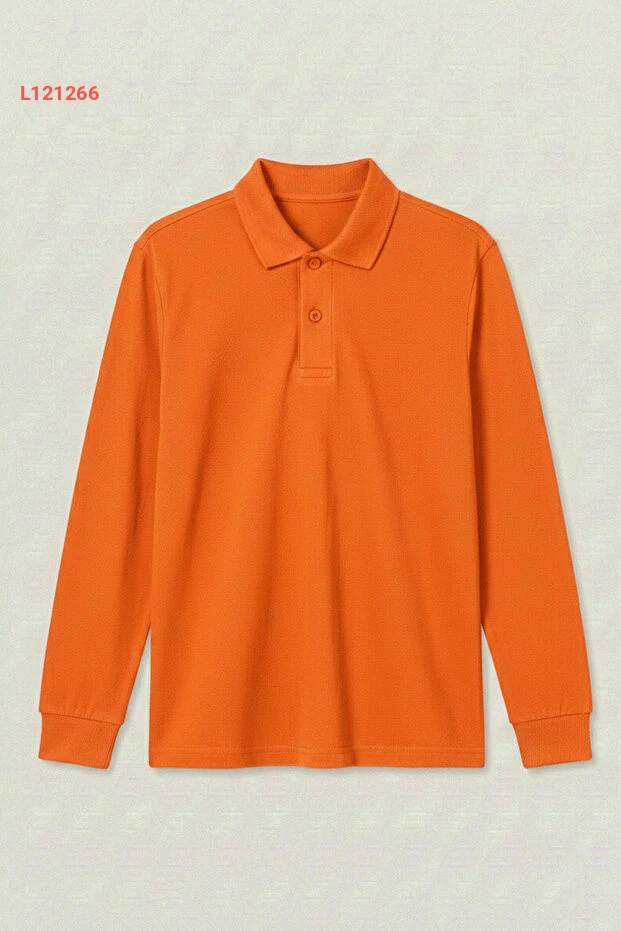 تيشيرت بولو برتقالي طويل الأكمام من قطن 100% للمدرسة والأنشطة اليومية