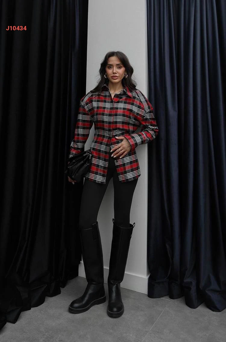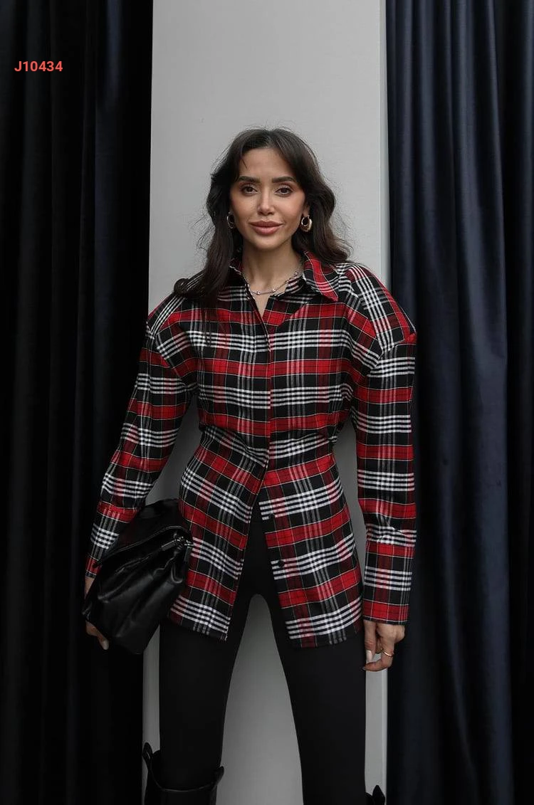 قميص كارو مع زنار ربط رفيع