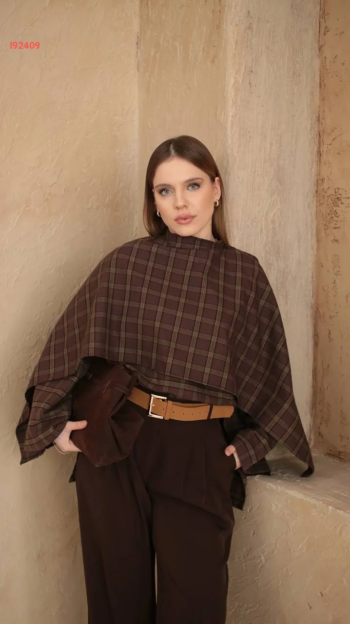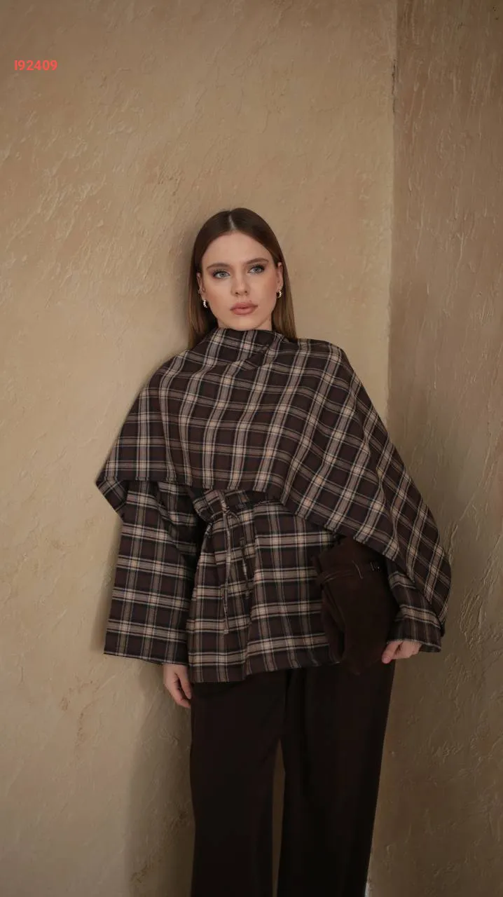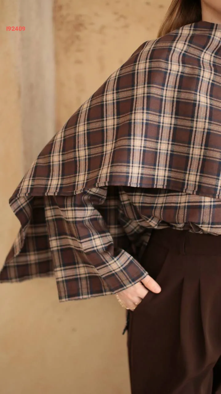 قميص كارو مع شال كتف عريض
