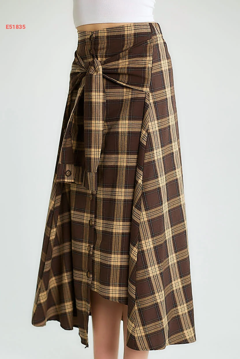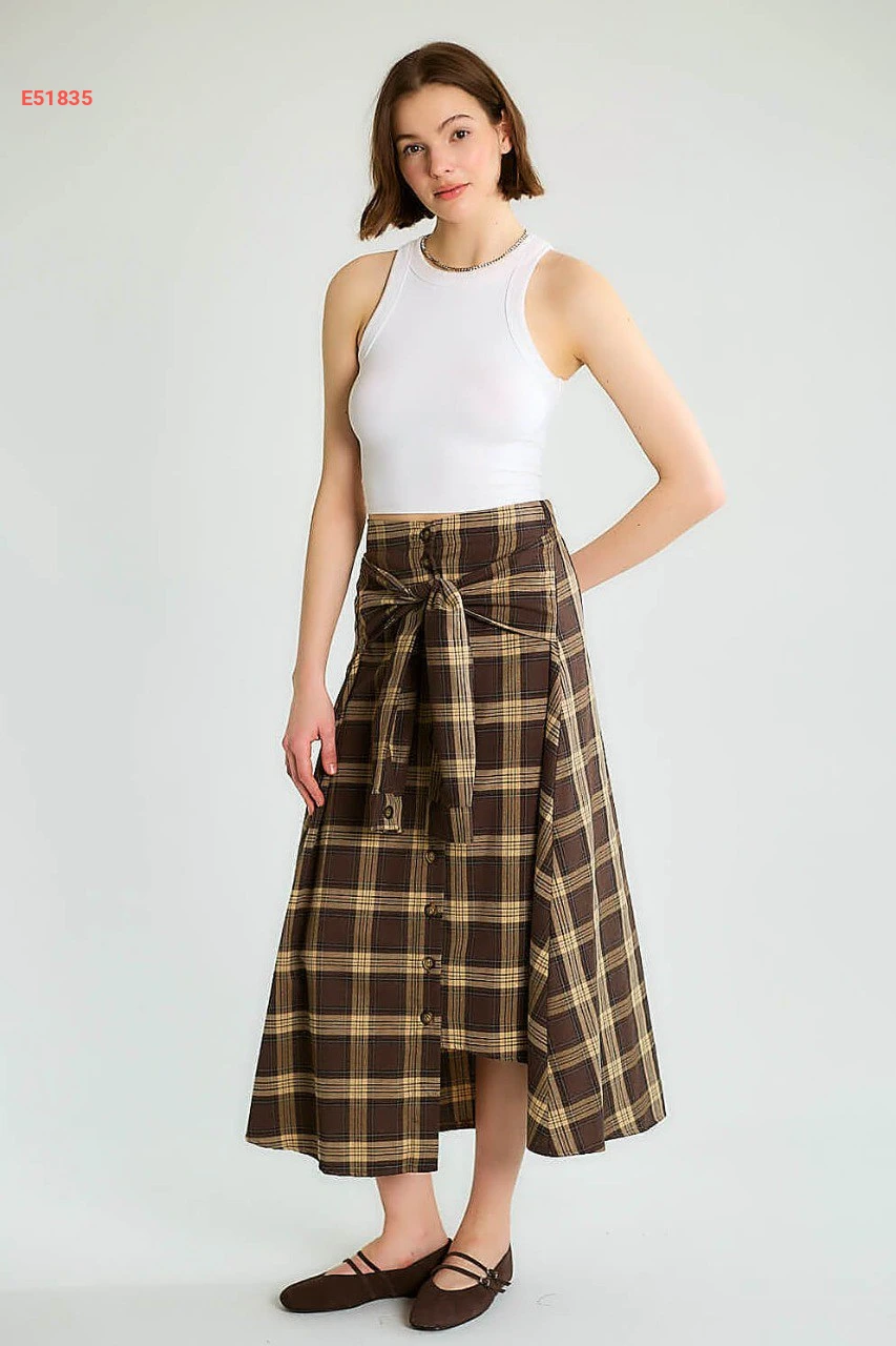 تنورة كارو بأزرار وزنار ربط