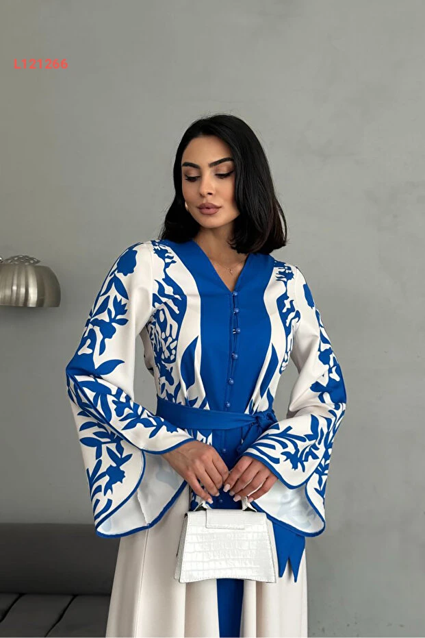 فستان نسائي بتفاصيل زر من قماش أطلس من نيشالي بوتيك NBMS2507