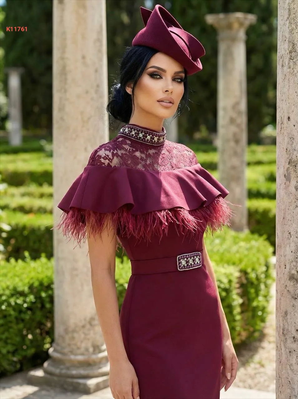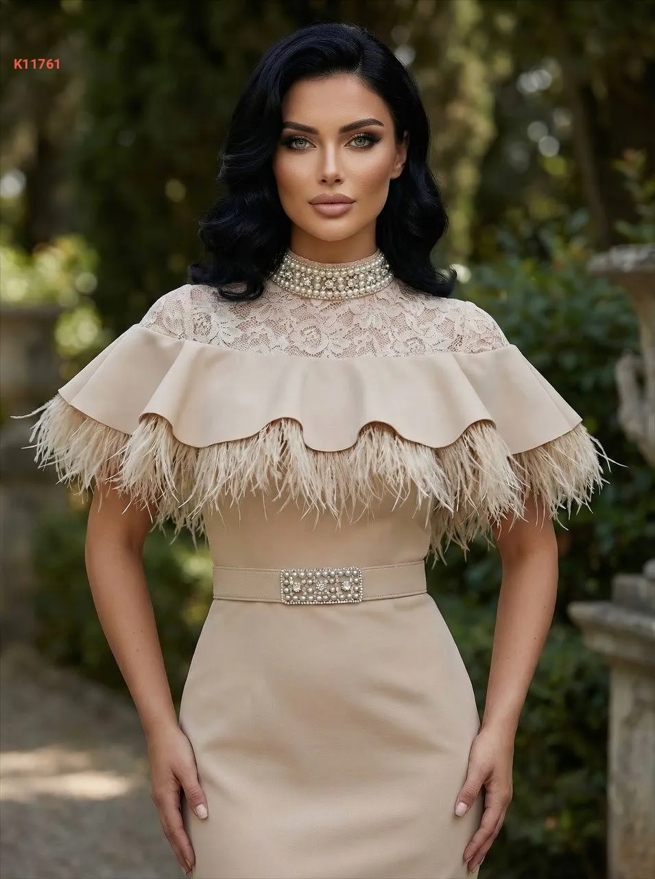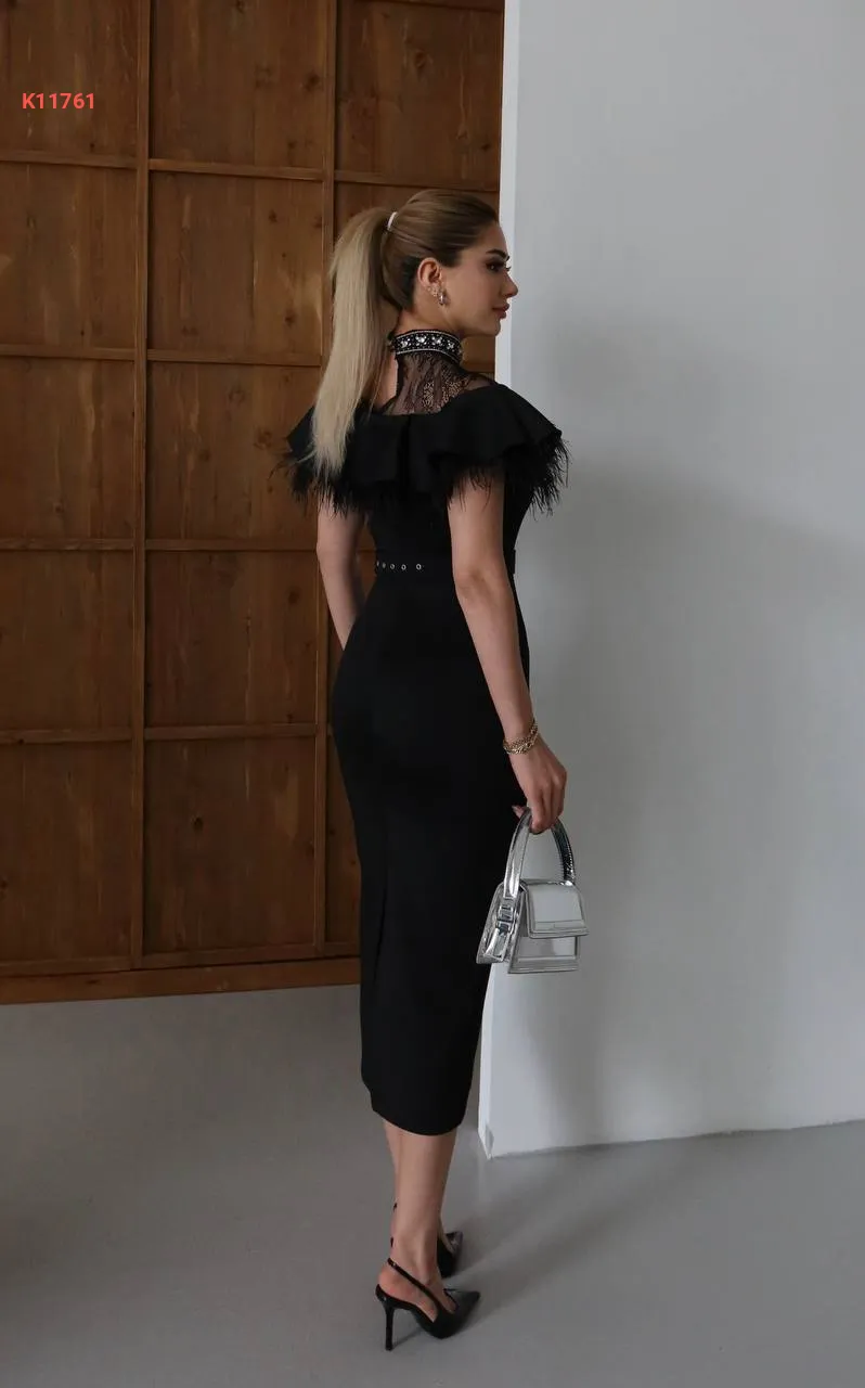 فستان مطرز لولو وأحجار عالقبة مع ريش
