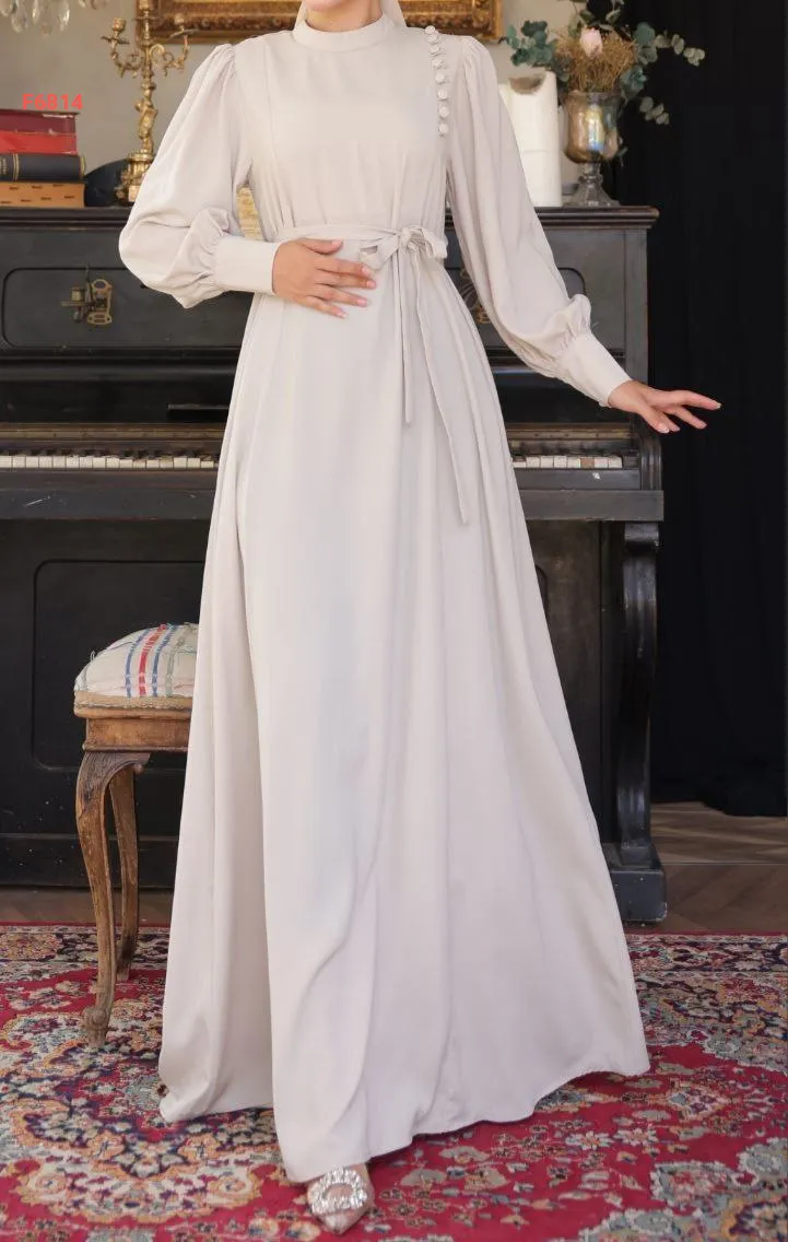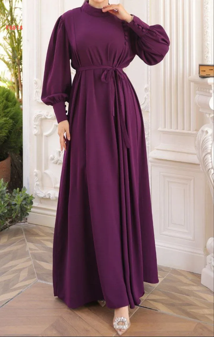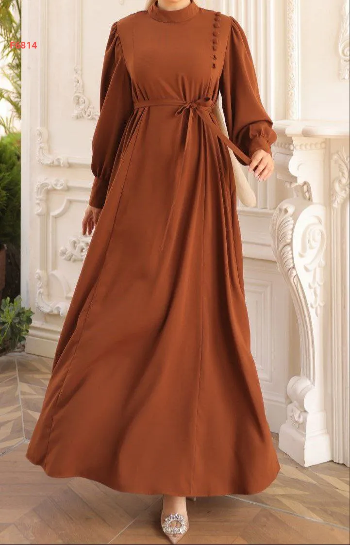 فستان طويل بلون موحد