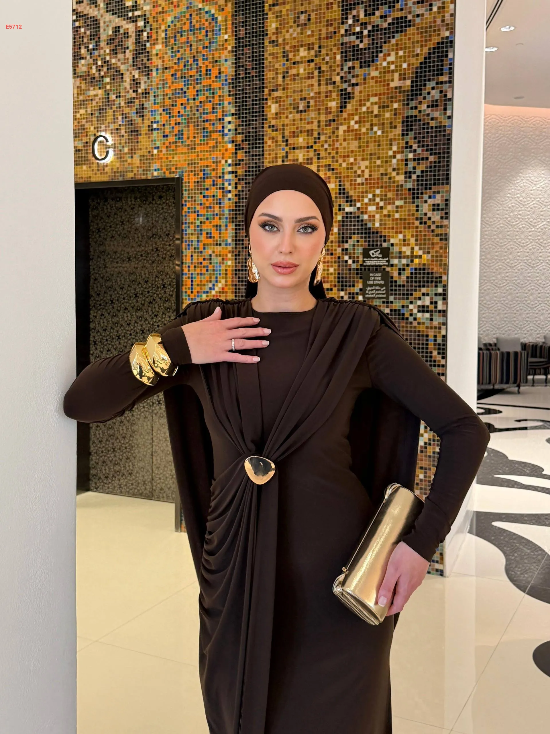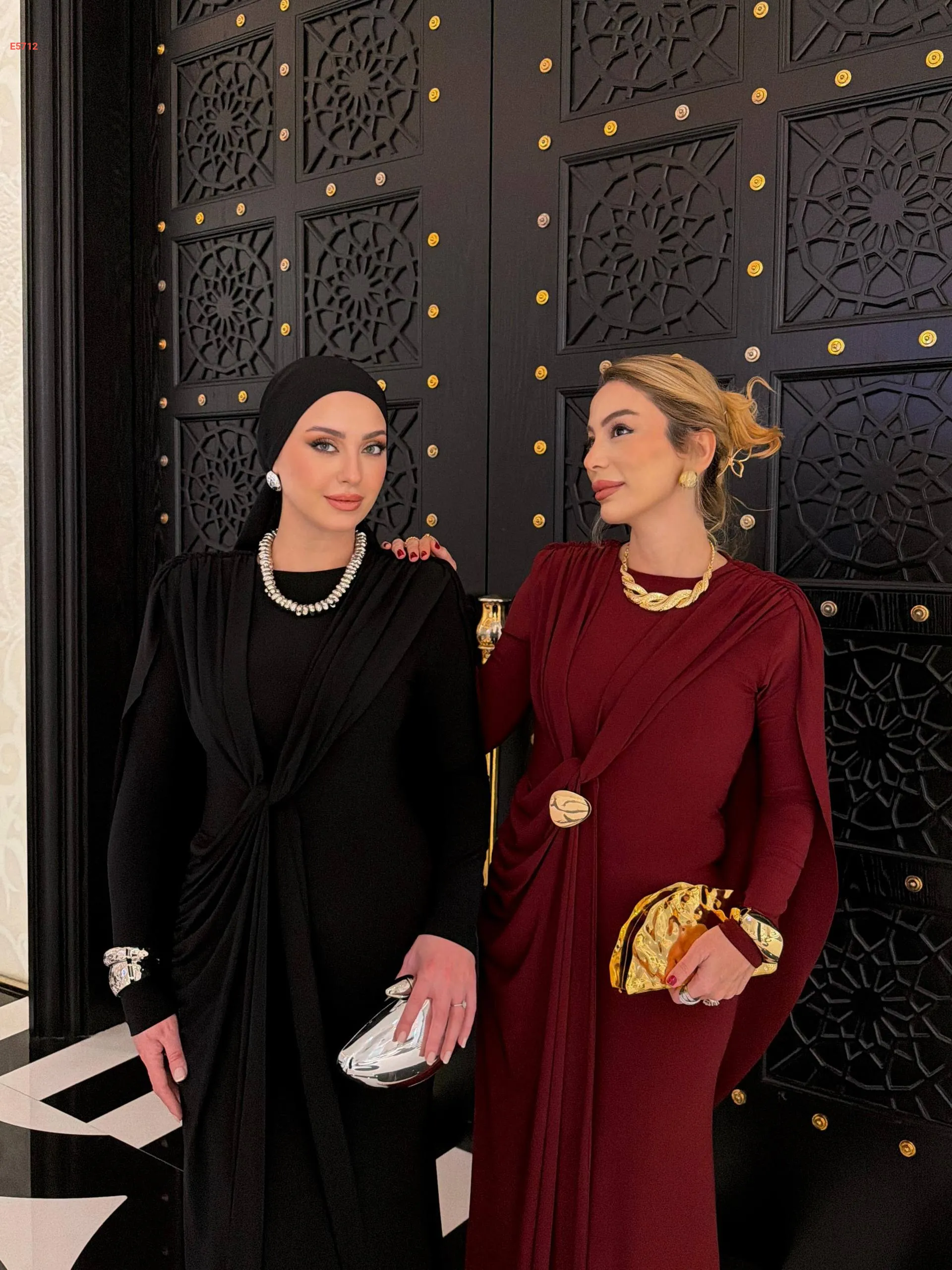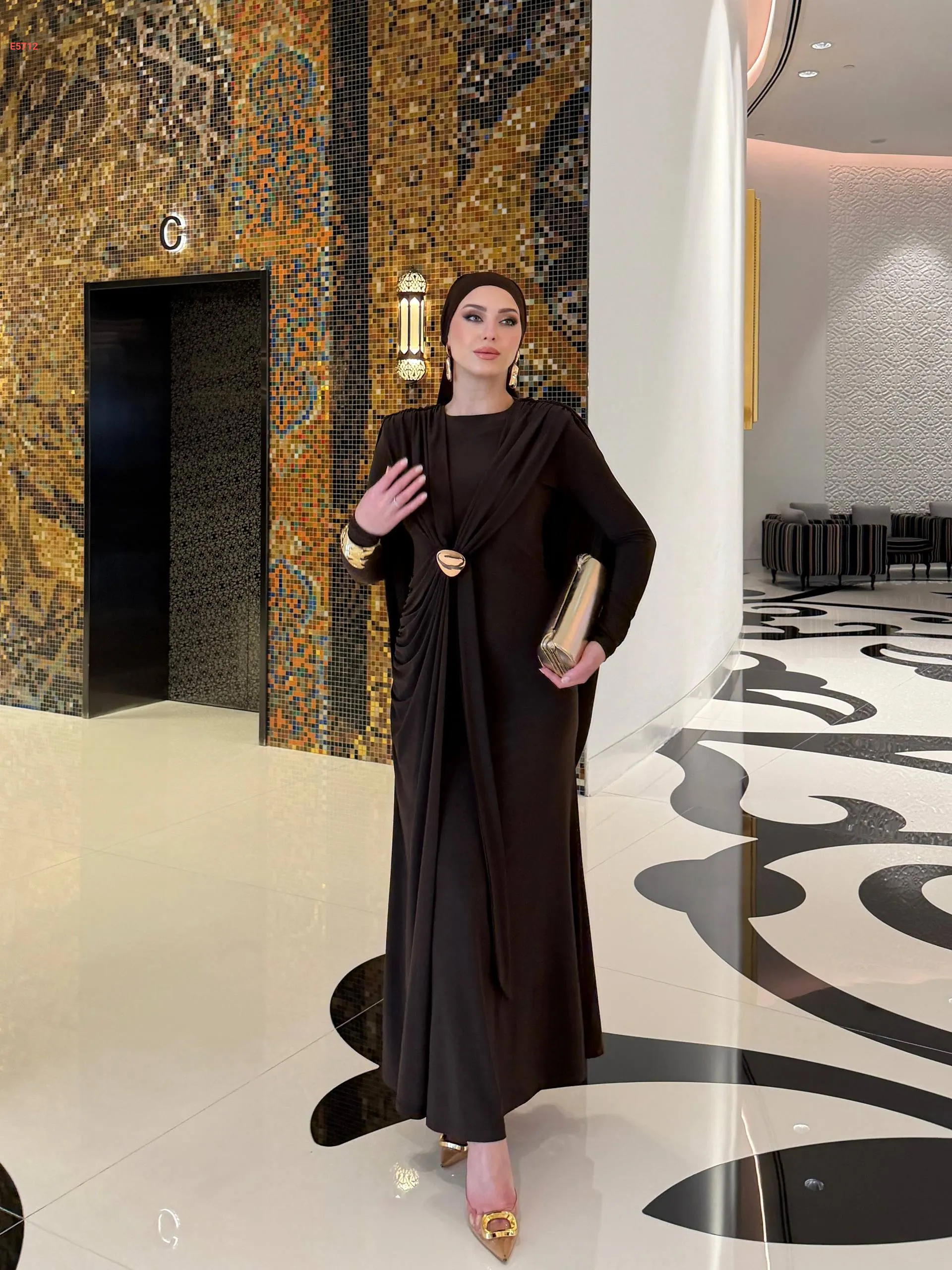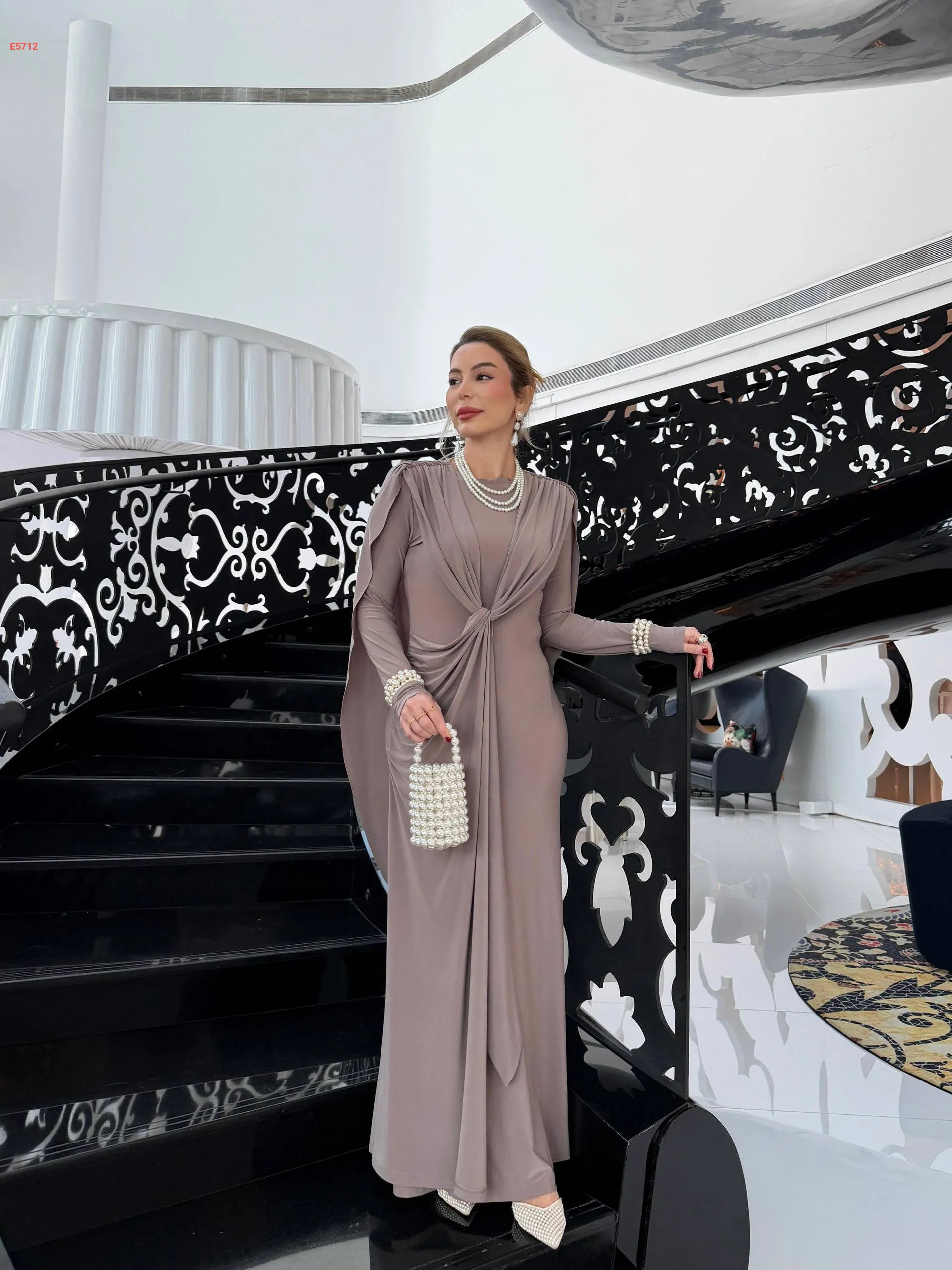 فستان طويل شيك بتفاصيل مجمعة