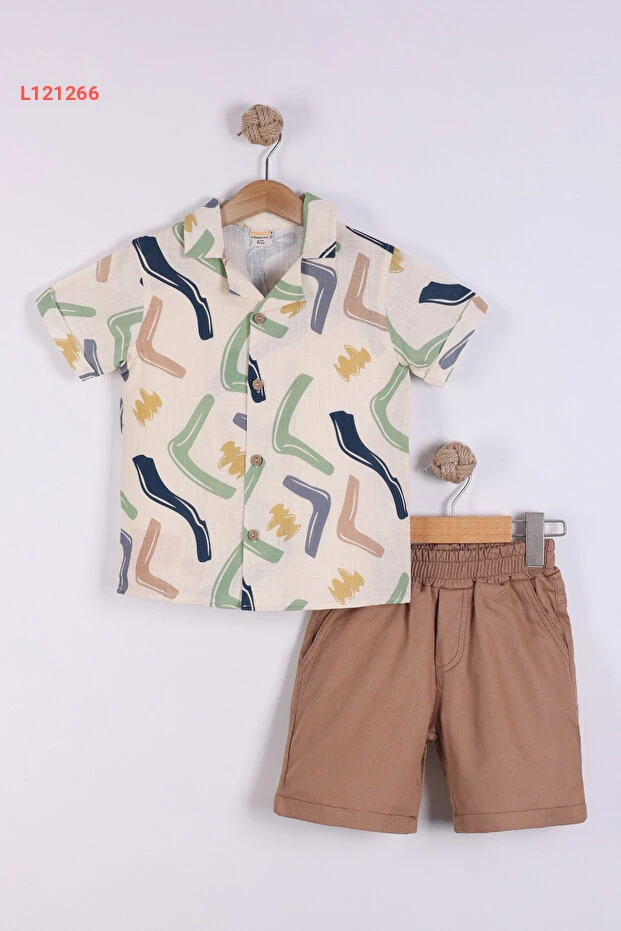 طقم شورت وقميص بأكمام قصيرة بتصميم ملون للأطفال الأولاد