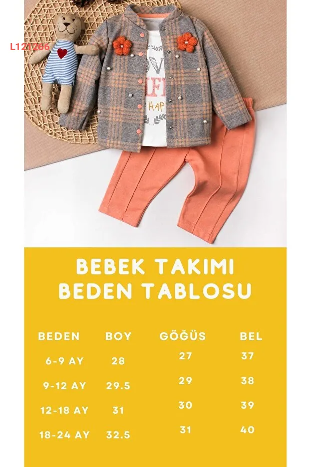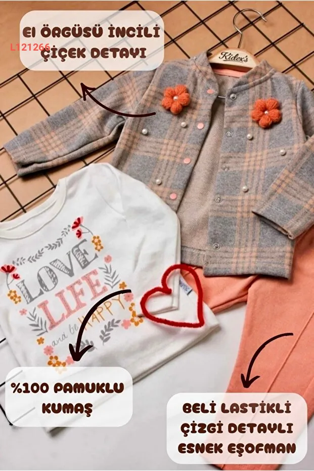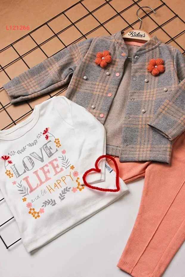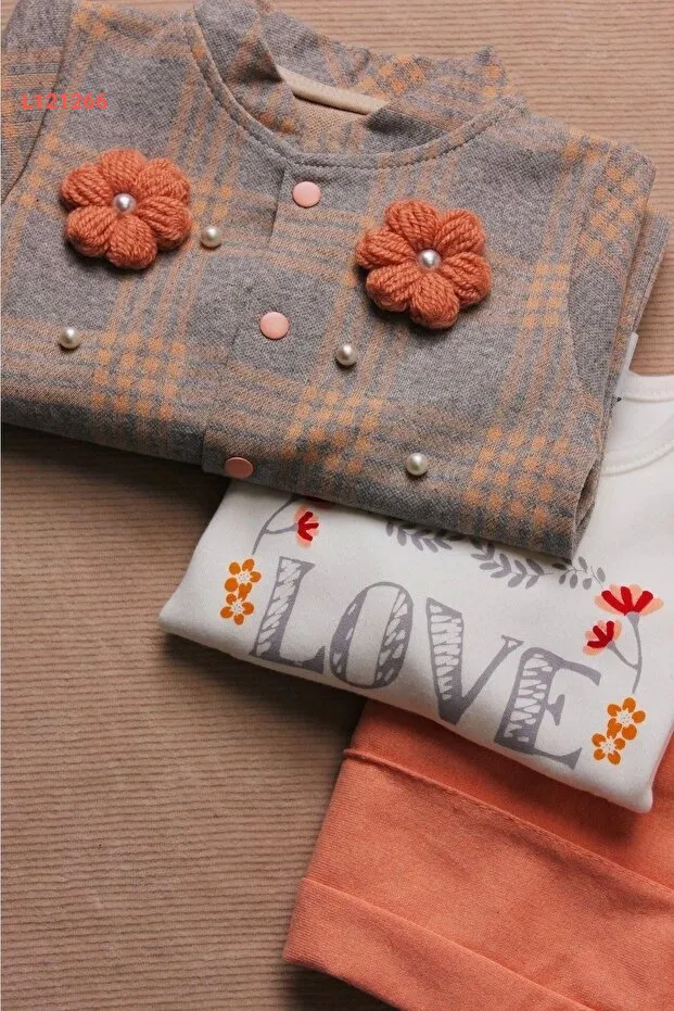 استمتعِ بأناقة وراحة لا مثيل لهما مع طقم Chicsy المكون من ثلاثة قطع للبيبي الفتاة، المصنوع من قطن 100٪ الناعم والمريح. تتميز الخامة بنقوش الأزهار الأنيقة واللمسات بخرز اللؤلؤ، مما يجعل هذا الطقم الخيار المثالي لكل مناسبة. أتركي ابنتك تتألق بالأسلوب والراحة القصوى.