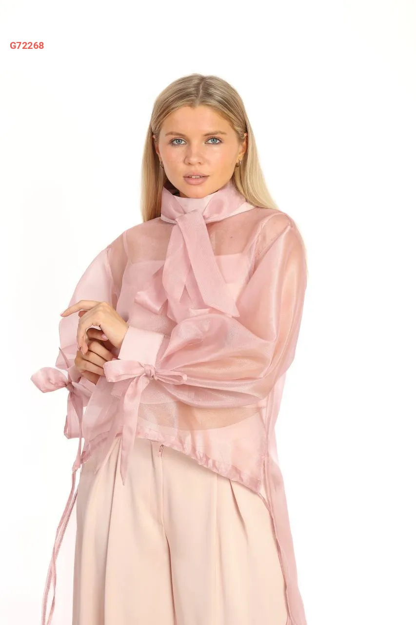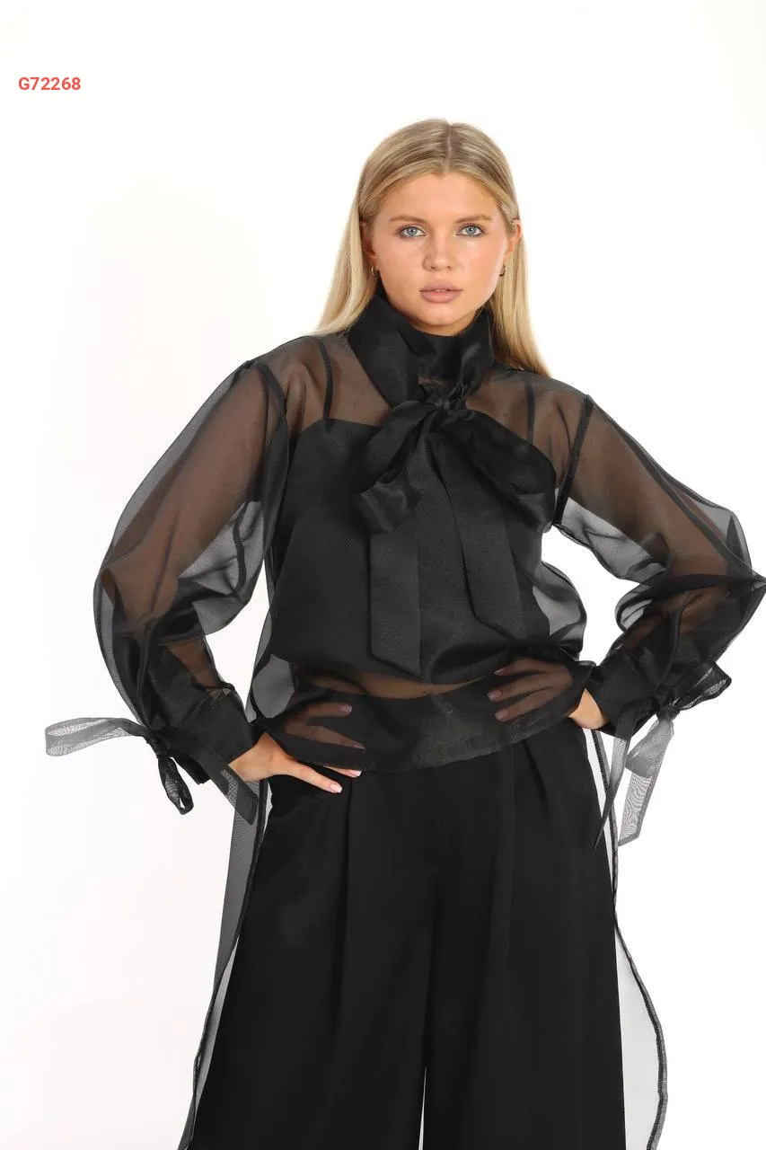 طقم بلوزة شيفون بشاحط مع بنطال سواريه