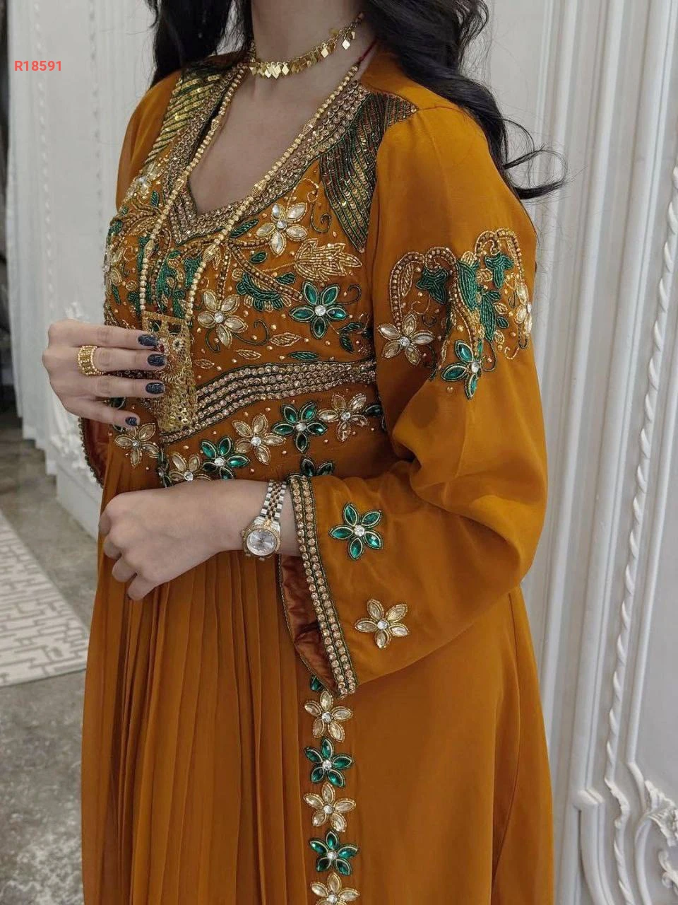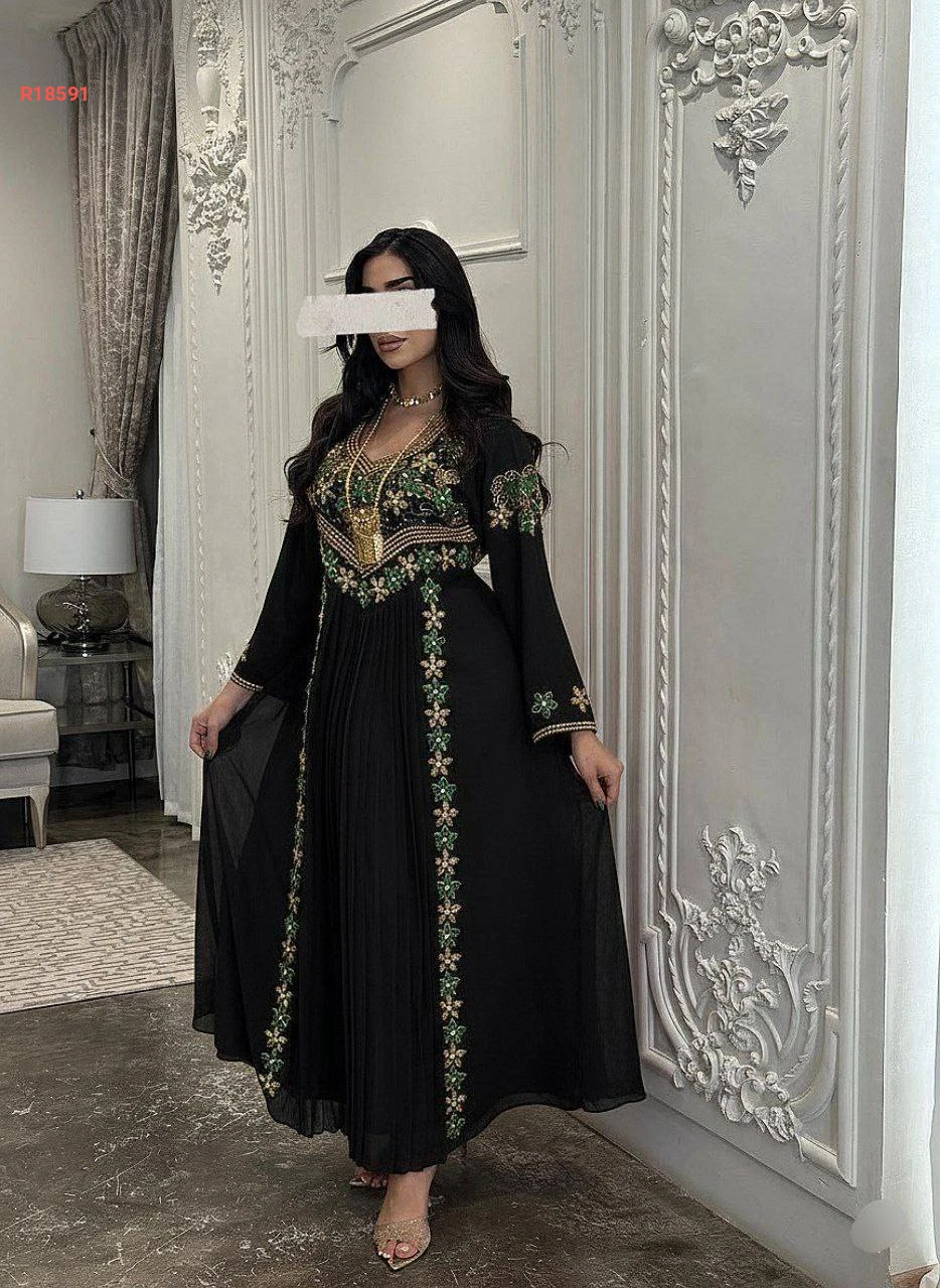 فستان شيفون مبطن بتطريز مرصع بالكريستال والألماس