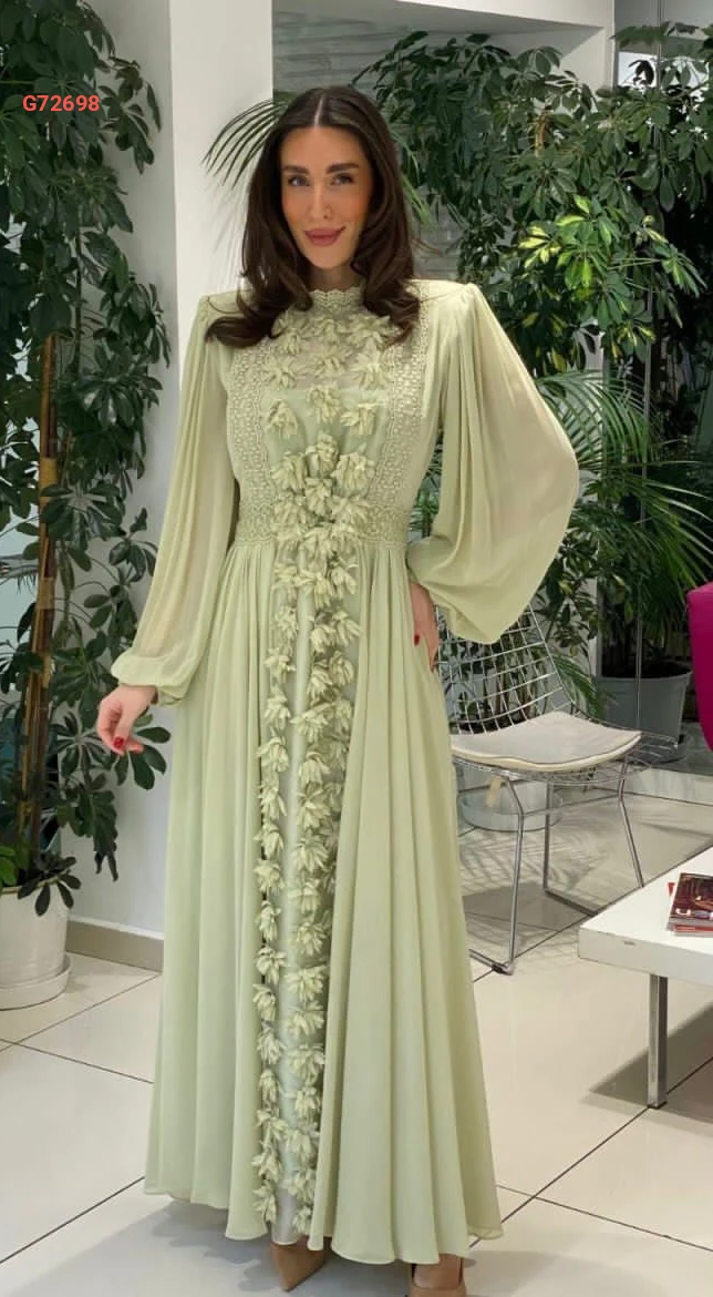 فستان شيفون مع تطريز وورد