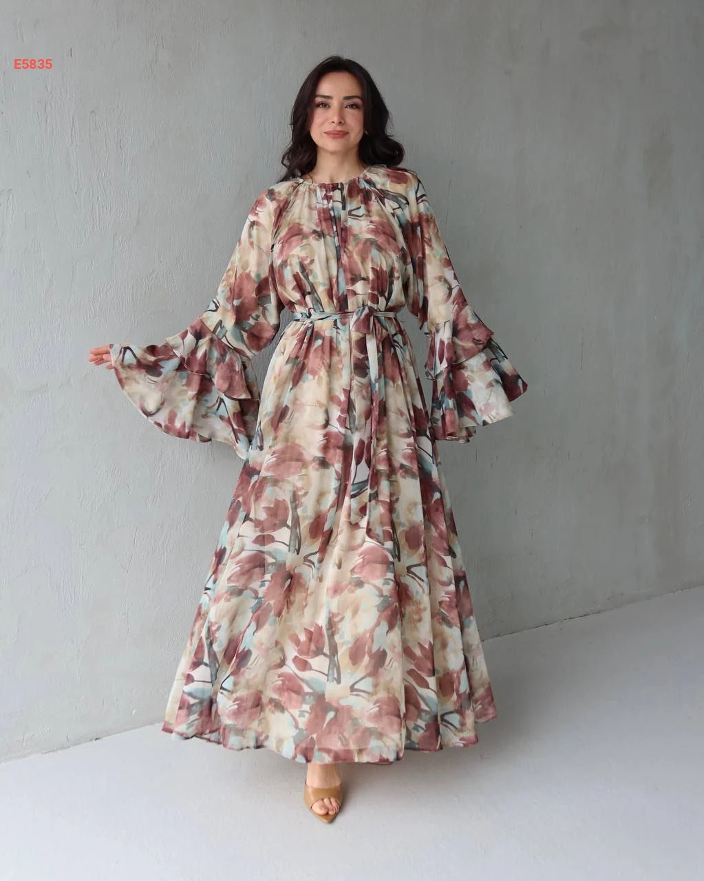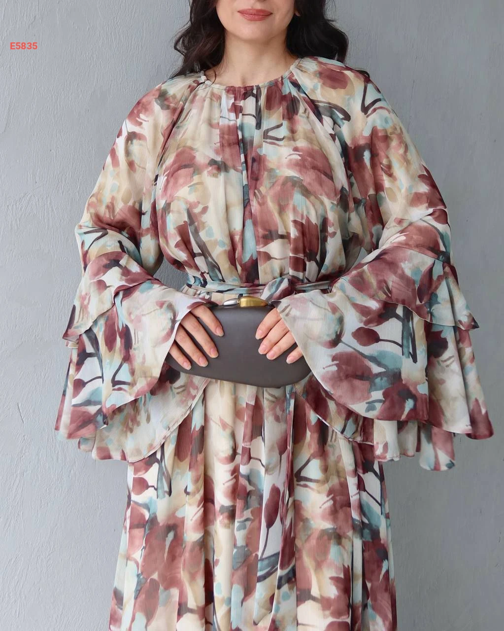 فستان شيفون مورد بأكمام مكشكشة